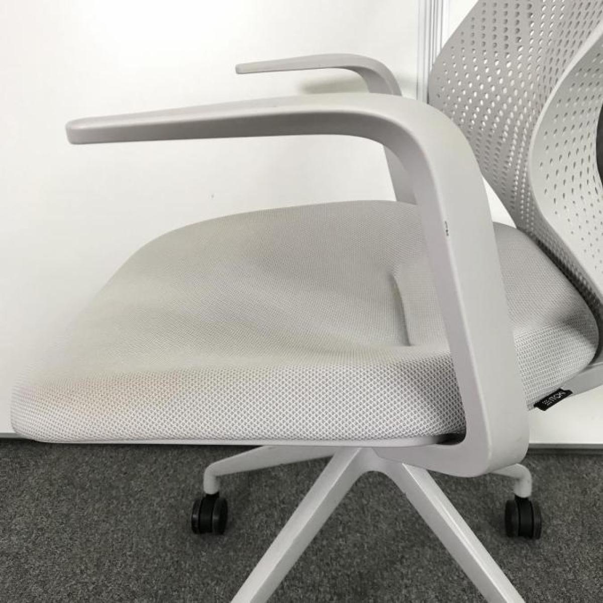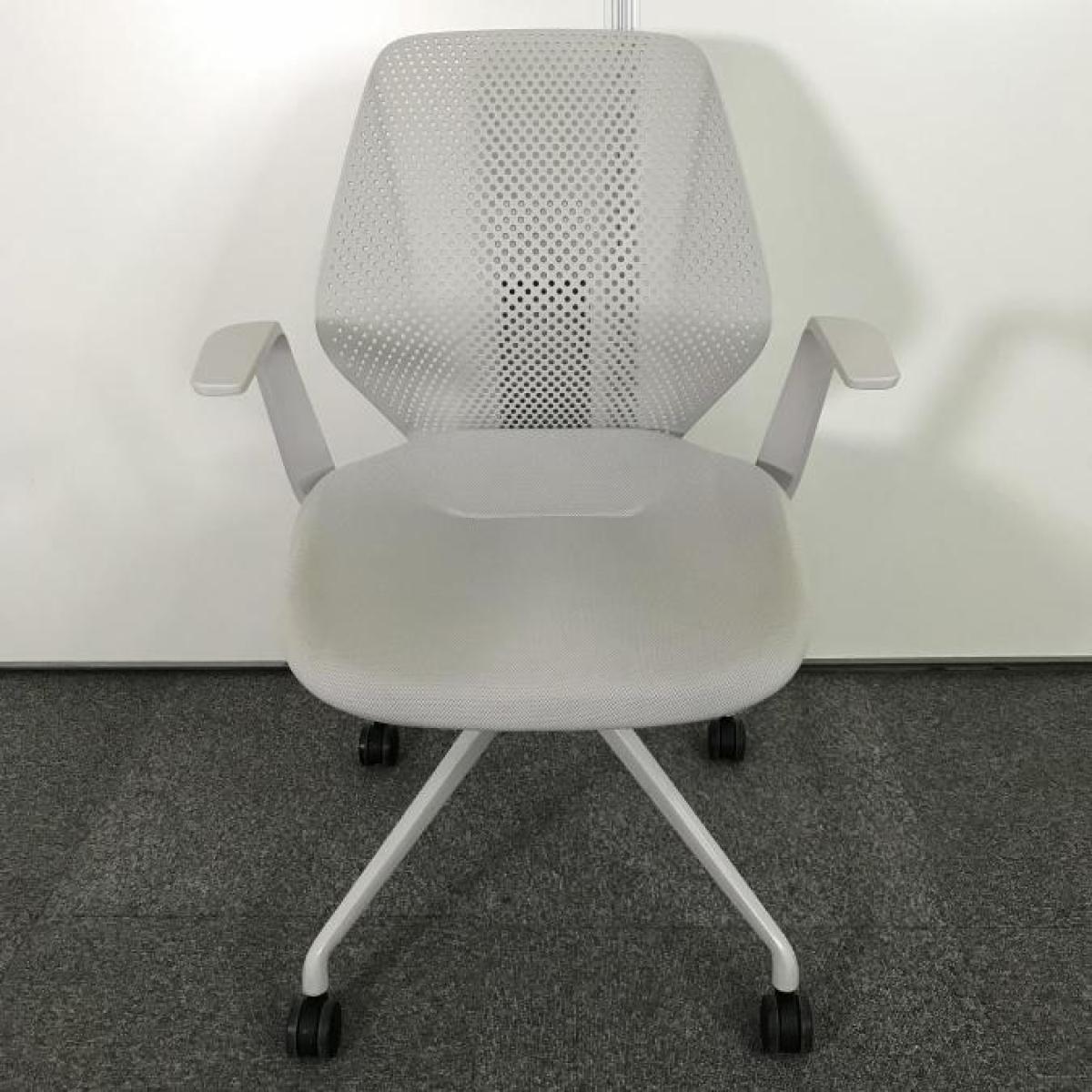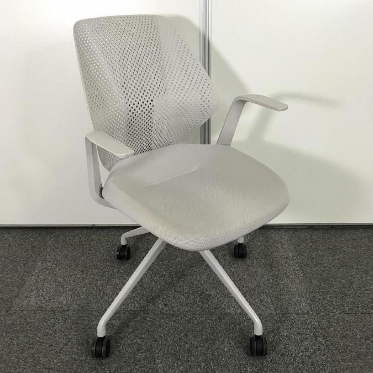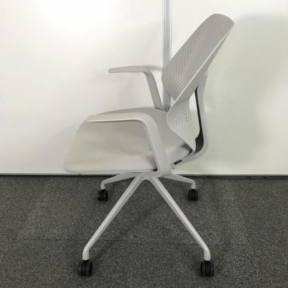 【腰回りをしっかりサポート!】オフィスに新しい風を吹き込むライトタスクチェア! ■イトーキ/キュアチェア(QuA)/背カラー:ライトグレーG 座カラー:ホワイトグレーT ミーティングチェア 固定肘 樹脂メッシュバック 4本脚 【ABW】- 立川・八王子店