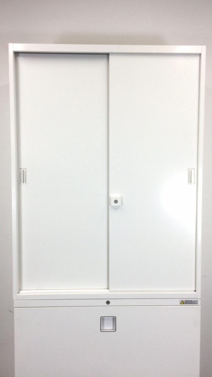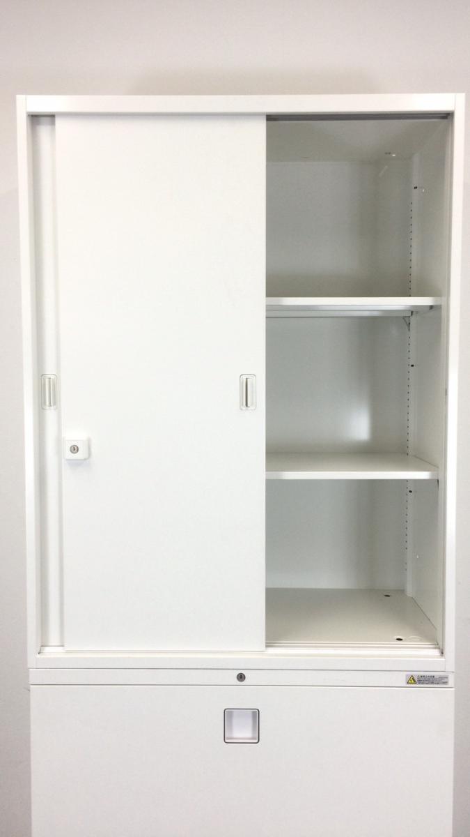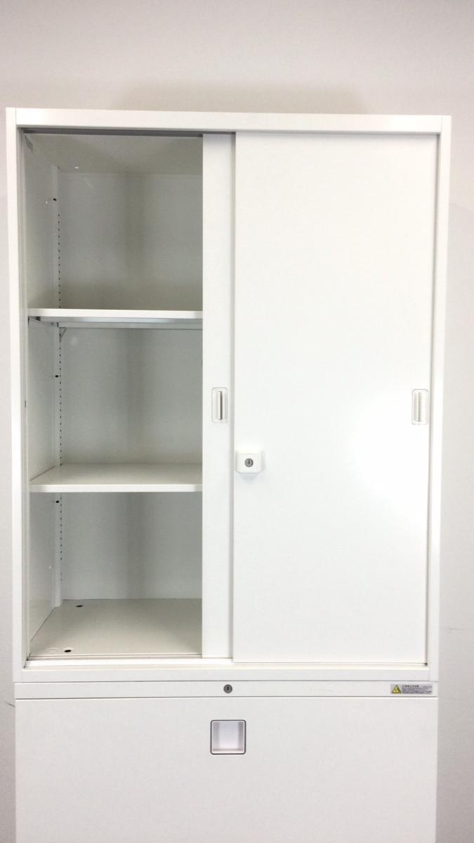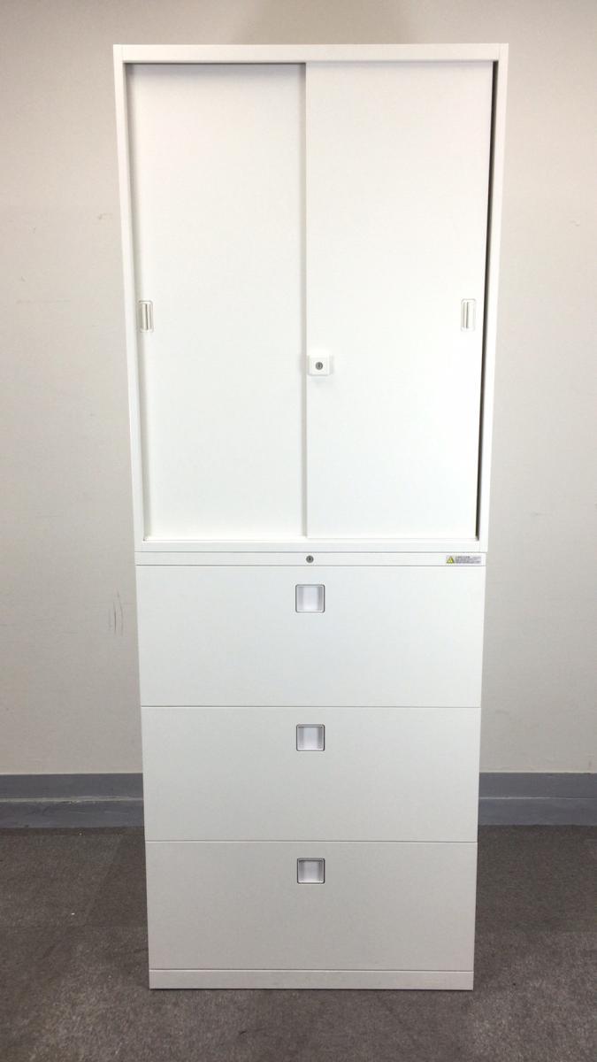 スライド式の扉+引き出しタイプの便利な書庫セットが入荷!使い勝手抜群のハイキャビネットが入荷! ■オカムラ/レクトライン/ホワイト 2枚引き戸+3段ラテラルキャビネット- 立川・八王子店