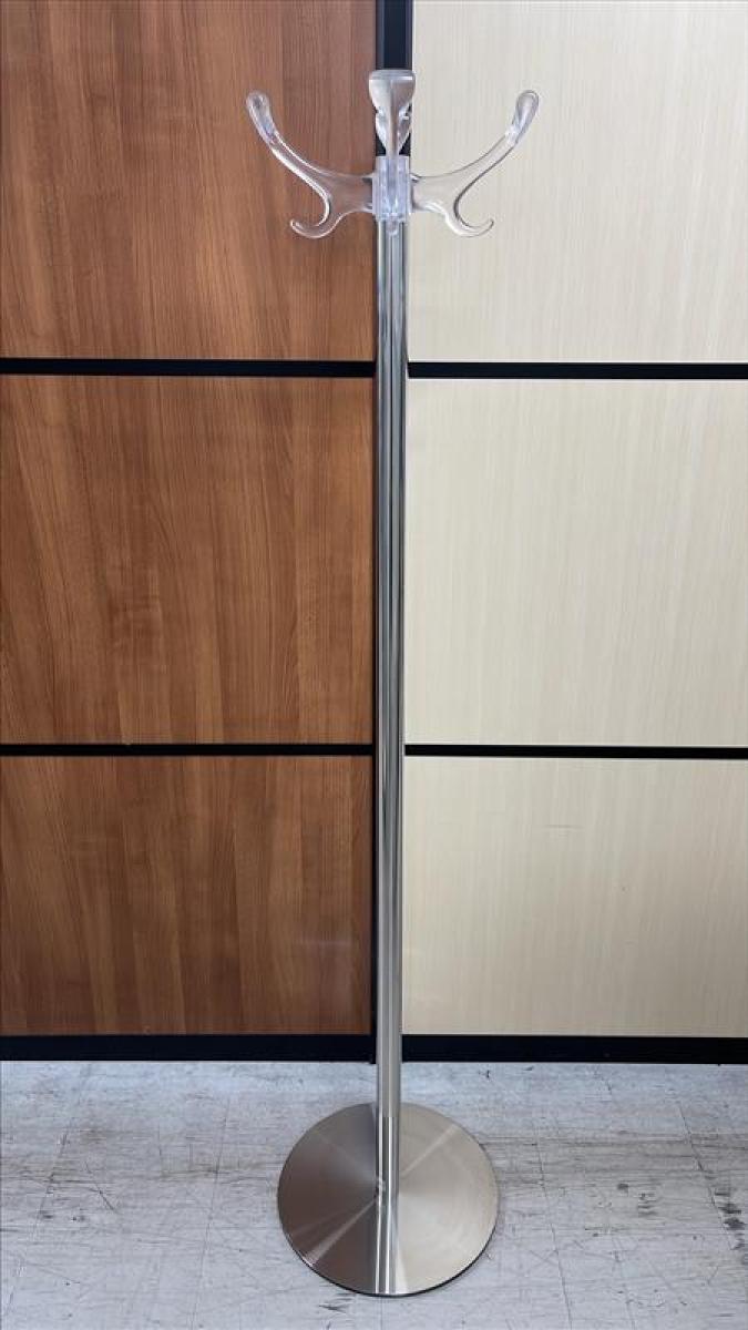 【事務所用や来客用、個室用としてもおすすめ!高級感のあるステンレス仕上げ!スタイリッシュなポールハンガー!】■オカムラ(okamura)製 ハンガースタンド ポールタイプ コートハンガー W450×H1750㎜ ■シルバー- 新大阪店