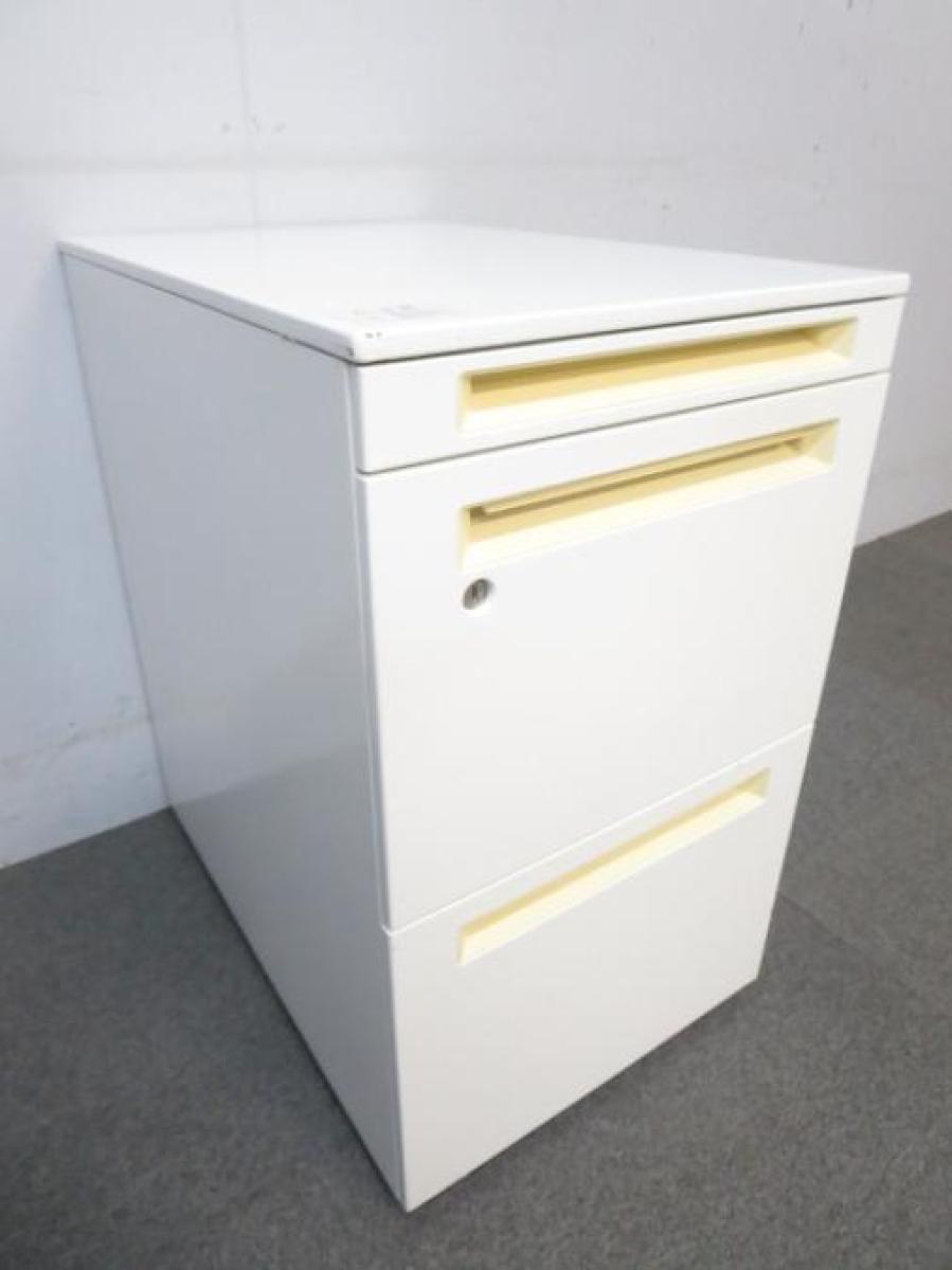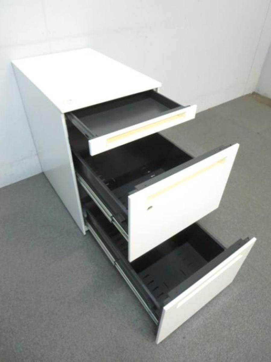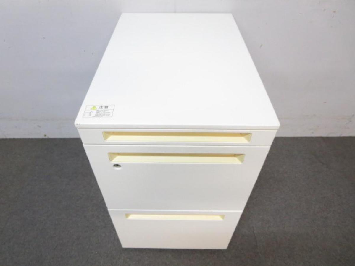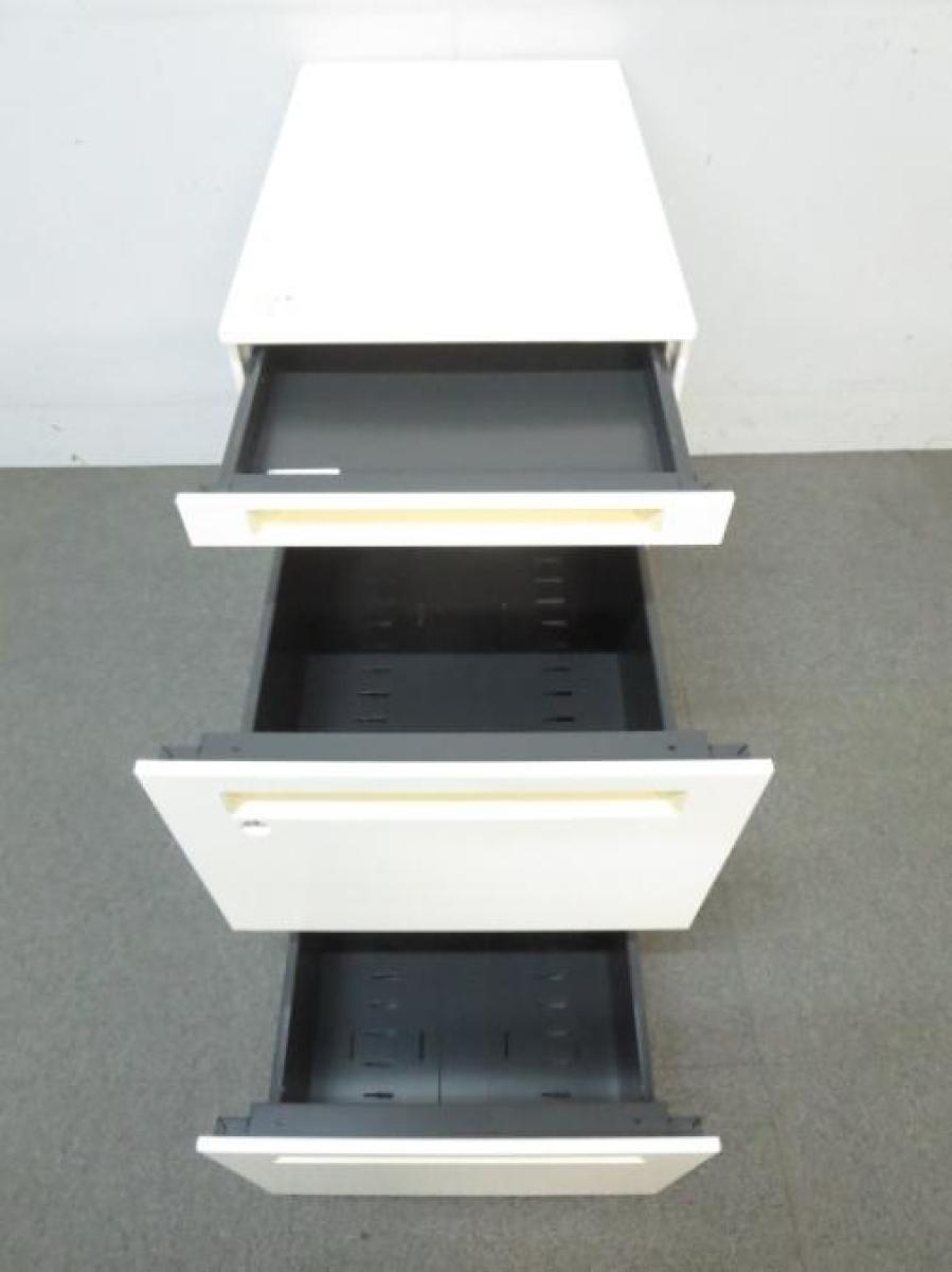 【商品入れ替え】【フリーアドレスの必須品!収納とワークスペースの拡張にオススメ!】■オカムラ(okamura)製 プロユニット 3段ワゴン フリアド用 ■高さ:650mm ■色:ホワイト ■シリンダー錠 ■各段の大きさが違いますのでご注意ください!