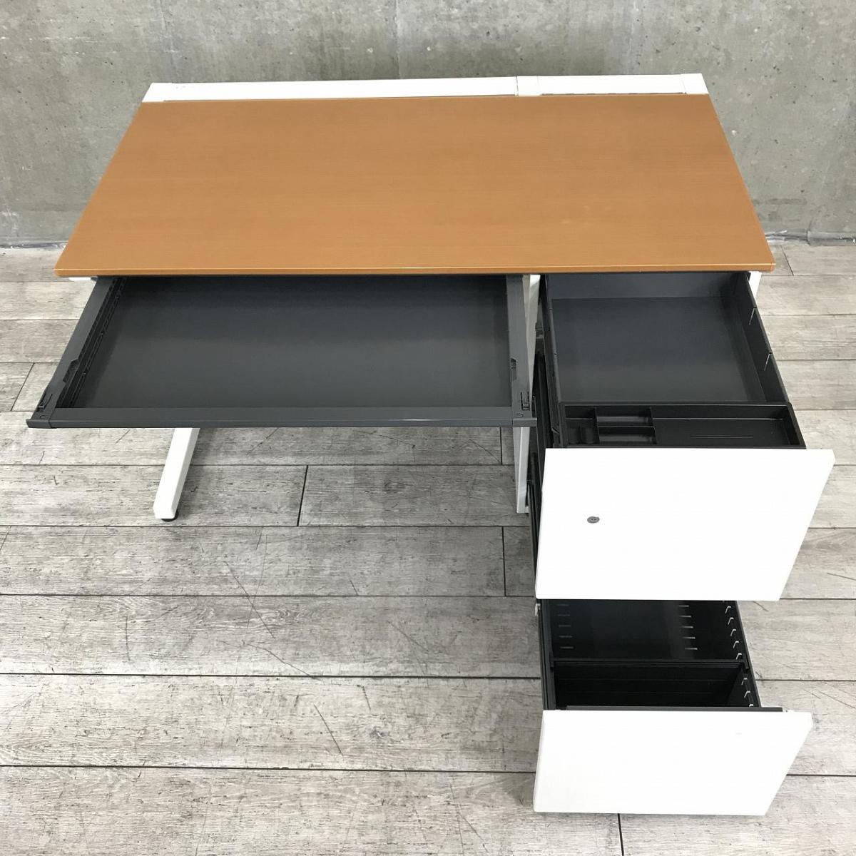 【流行りの木目調天板デスク!収納も充実で使いやすい!幅1200㎜の定番人気サイズ】■コクヨ(KOKUYO)製 iSシリーズ 片袖机 W1200×D700㎜ ■シリンダー錠 ■天板:木目調ブラウン/本体:ホワイトサーキュラーバリューCO2削減量の算出について