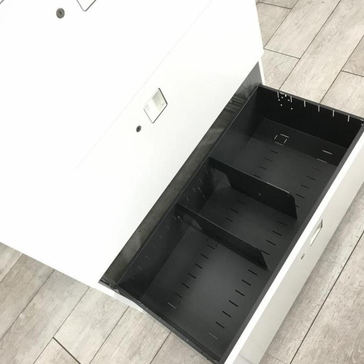 【オフィスの必需品!大容量の三段キャビネット!】■オカムラ(okamura)製 レクトラインシリーズ 3段ラテラル ローキャビネット ■ベース付 ■シリンダー錠 ■ホワイト 【弊社使用欄:A01041671】書庫セット 下