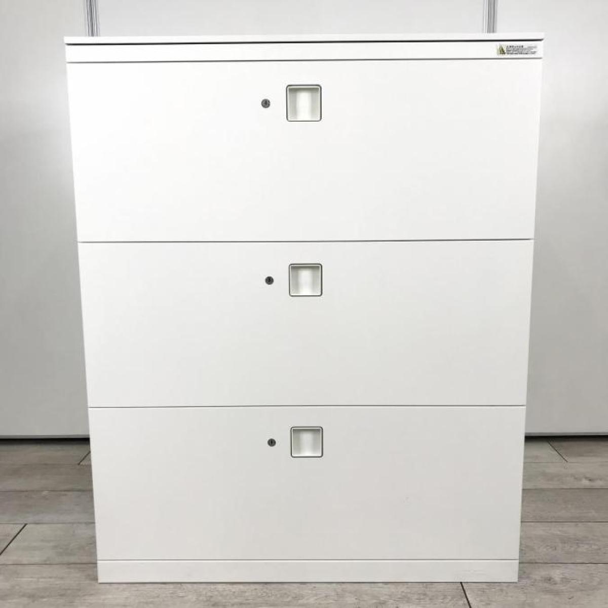★【T1】【T12】【商品入替のため、残り3台限り】オカムラ製 レクトライン ホワイト 高品質で使いやすい! 大容量の3段キャビネット! 3段ラテラル書庫!!【管理番号:A01032936】