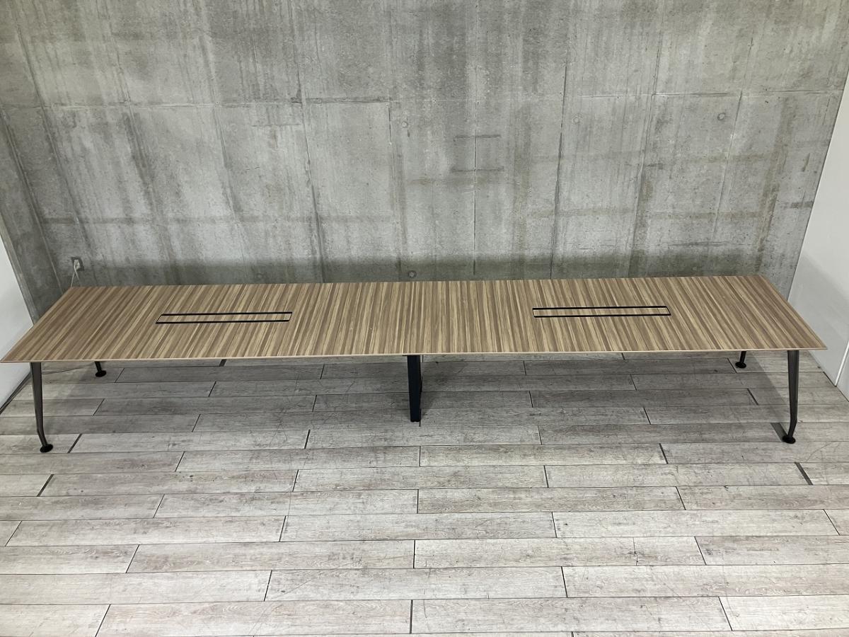 【「彩美」にして「細美」デザイン性抜群のスタイリッシュなミーティングテーブルが入荷!】■コクヨ(KOKUYO)製 サイビ(SAIBI)シリーズ ミーティングテーブル 角テーブル 会議用 W2400㎜ ■配線口 ■天板:木目ナチュラル/4本脚:アルミポリッシュ