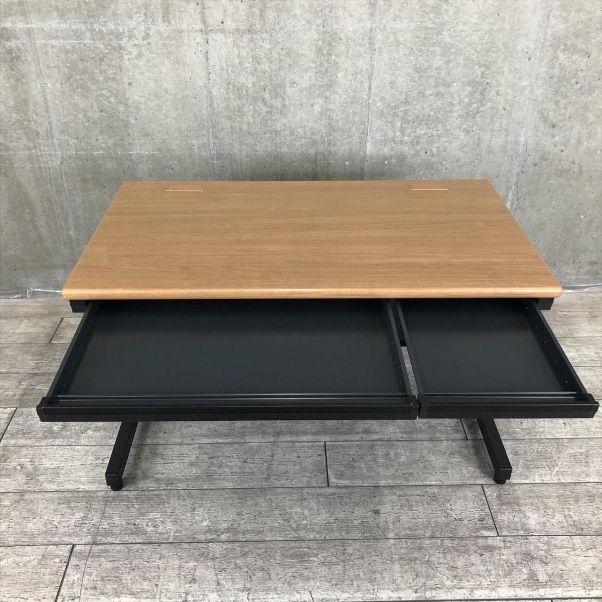 【定価約6万円】【希少なブラック基調の平机が入荷!定番サイズの幅1200㎜!シックなオフィスを作成したいお客様におすすめ!】■プラス(PLUS)製 リード(LEED)シリーズ 平机 引き出し付き W1200×D700㎜ ■天板:ミディアムウッド/脚:ブラック