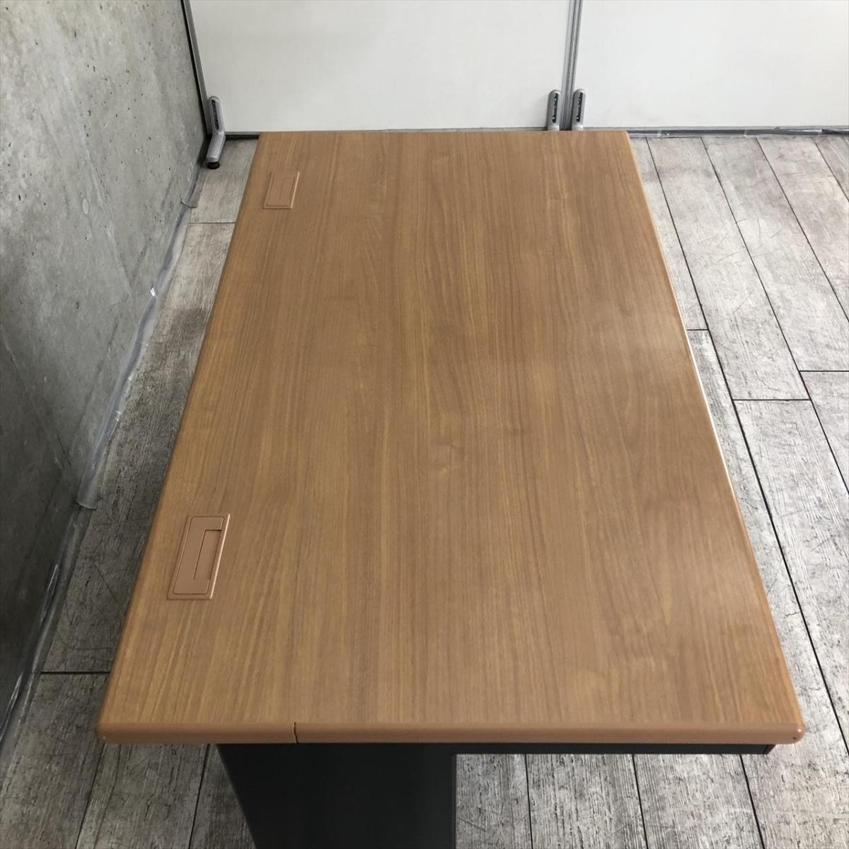 【定価約6万円】【希少なブラック基調の平机が入荷!定番サイズの幅1200㎜!シックなオフィスを作成したいお客様におすすめ!】■プラス(PLUS)製 リード(LEED)シリーズ 平机 引き出し付き W1200×D700㎜ ■天板:ミディアムウッド/脚:ブラック在庫がある店舗一覧