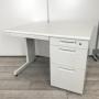 【コンパクトな片袖机☆作業と整理も一台で完結!】プラス(PLUS)製 リード(LEED) 片袖机 ホワイト 配線ダクト付き 中古家具 九州最大級 《オフィスバスターズ福岡博多店は、福岡を拠点として、日本全国へ中古オフィス用品・オフィス家具を提供しております》