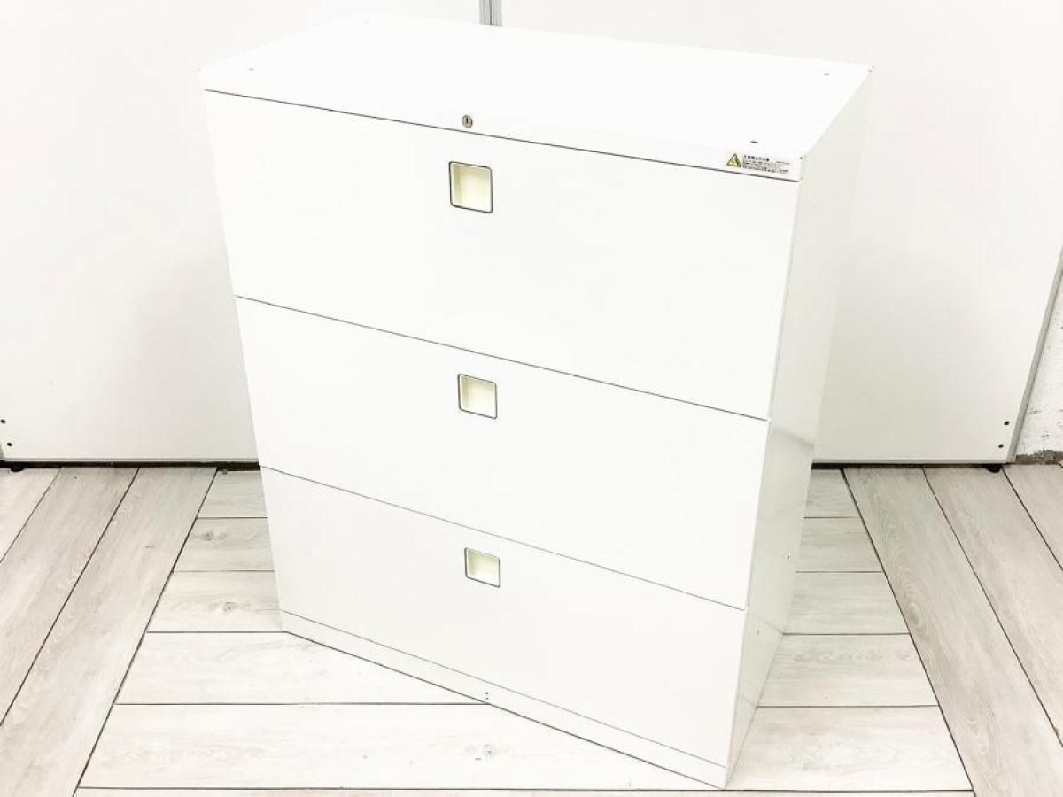 ★【T1】【T12】【商品入替のため、残り3台限り】オカムラ製 レクトライン ホワイト 高品質で使いやすい! 大容量の3段キャビネット! 3段ラテラル書庫!!【管理番号:A01032936】