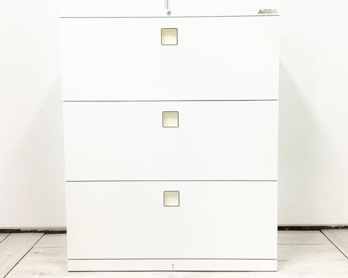 【高品質で使いやすい!上下左右から開閉操作できる!】■オカムラ レクトラインシリーズ 3段ラテラル書庫 ホワイト天板付 ■ファイル収納にオススメ!引出し型キャビネット【Okamura Rectline】