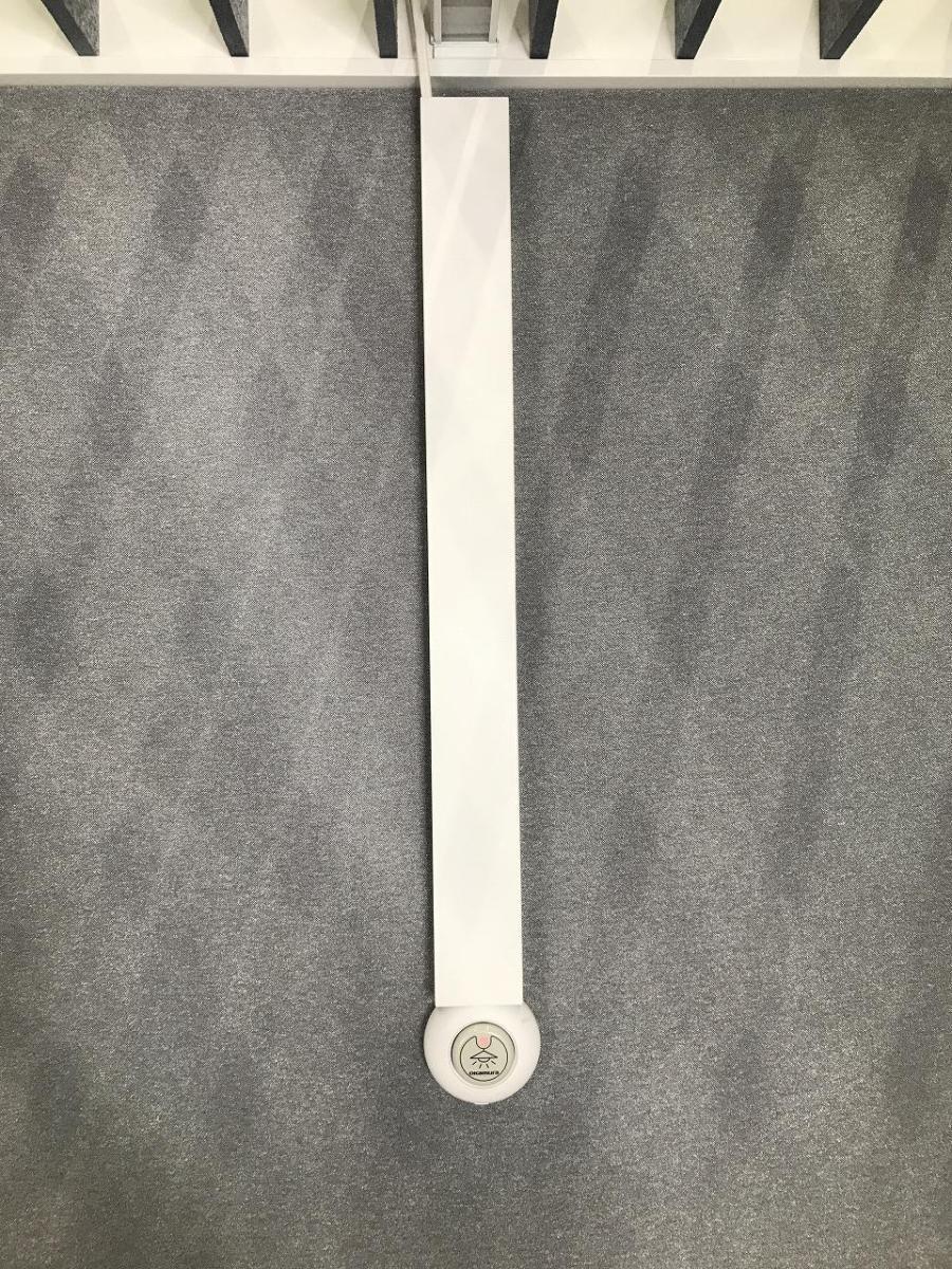 天井はルーバータイプで、照明はパーテーションに沿ってついております。