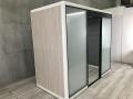 四方を囲うセミクローズ型のブースとして、外界の音や視線を遮り、