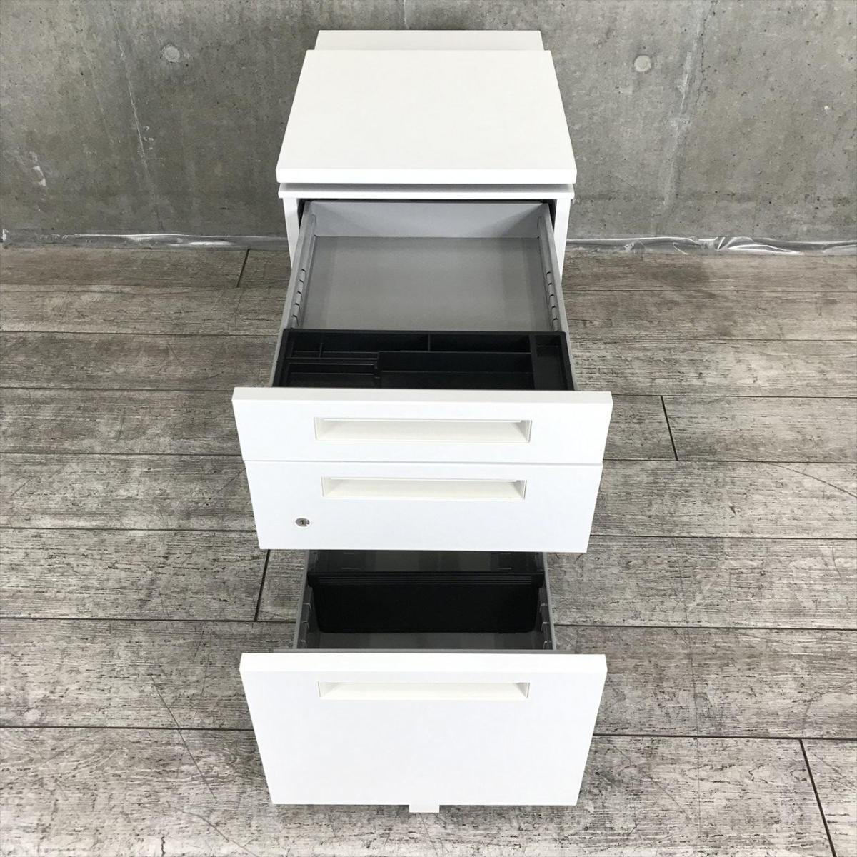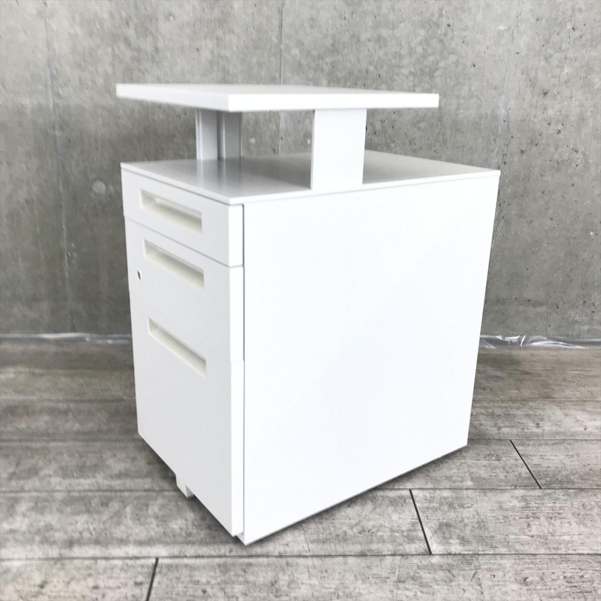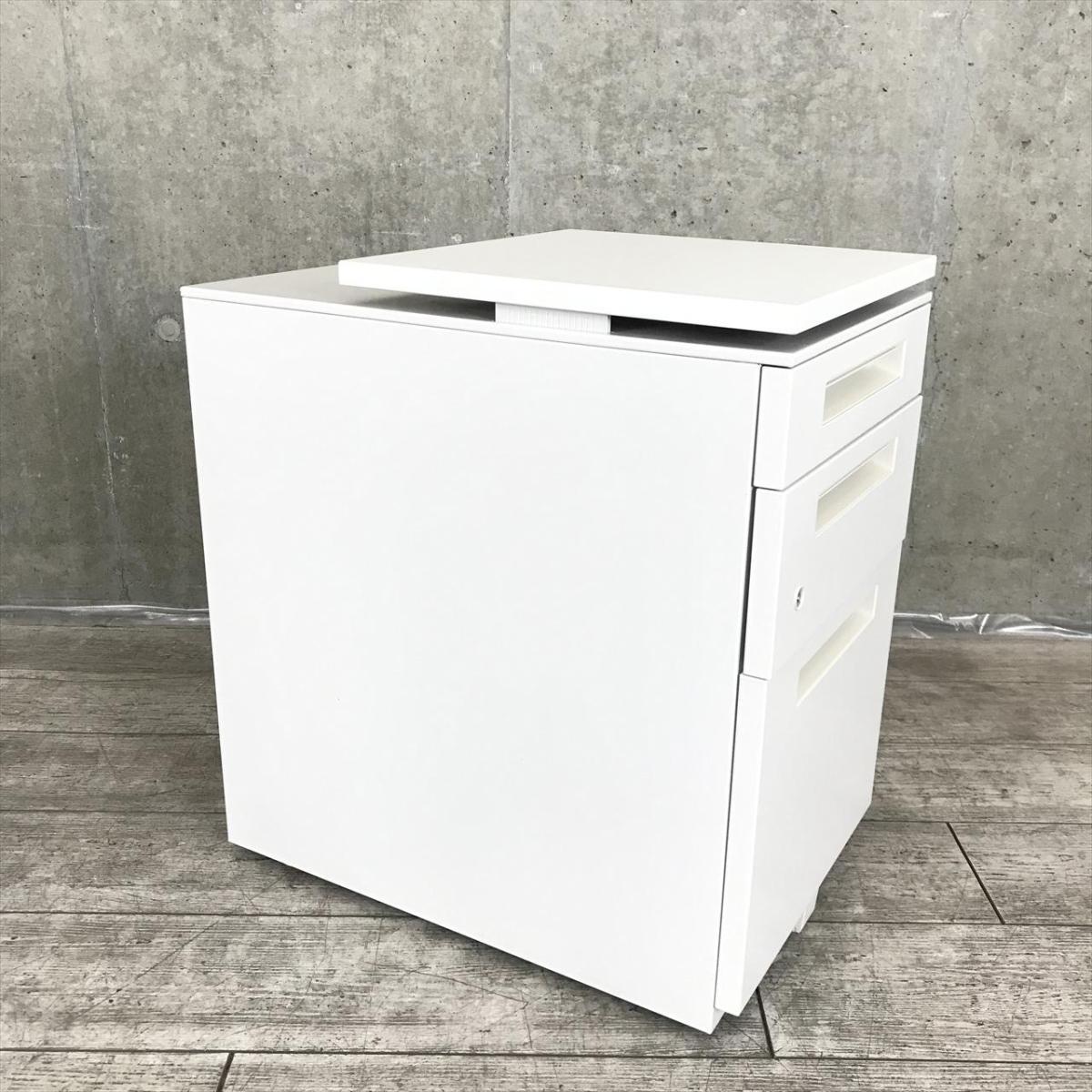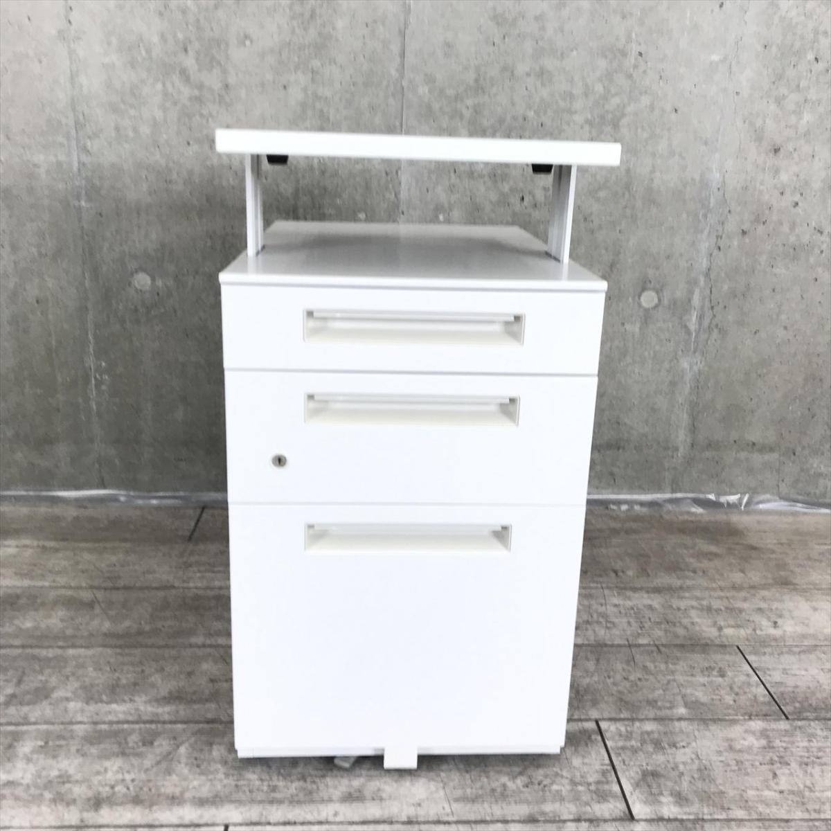 これは便利!上下昇降する便利な天板付きタイプ!【シンプルなデザインはどんな空間にもマッチします!平机のお供としてもオススメ!】■イナバ(Inaba)製 Sワゴンシリーズ 3段ワゴン デスクインワゴン ■ホワイト ■シリンダー錠【弊社使用欄:A01052694】【SN】- 渋谷サテライト