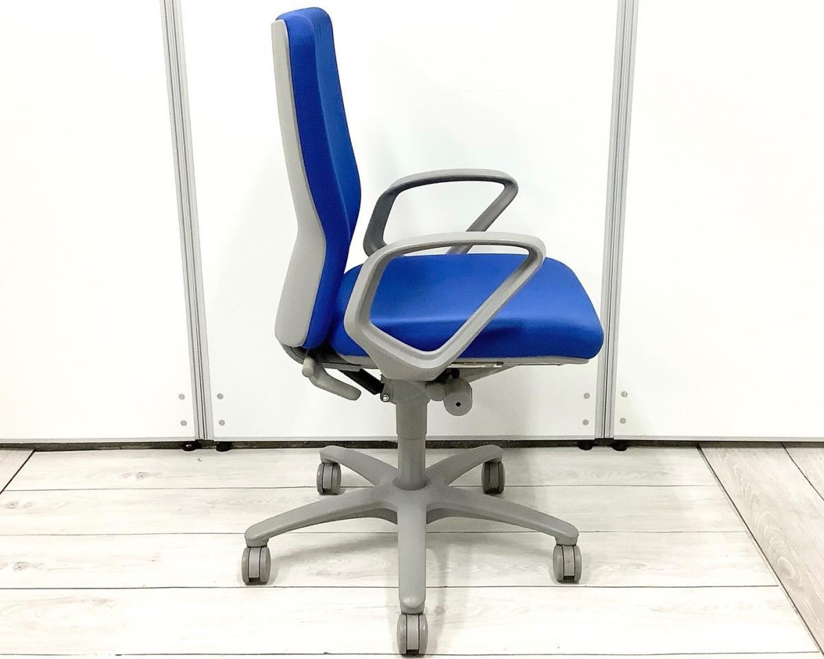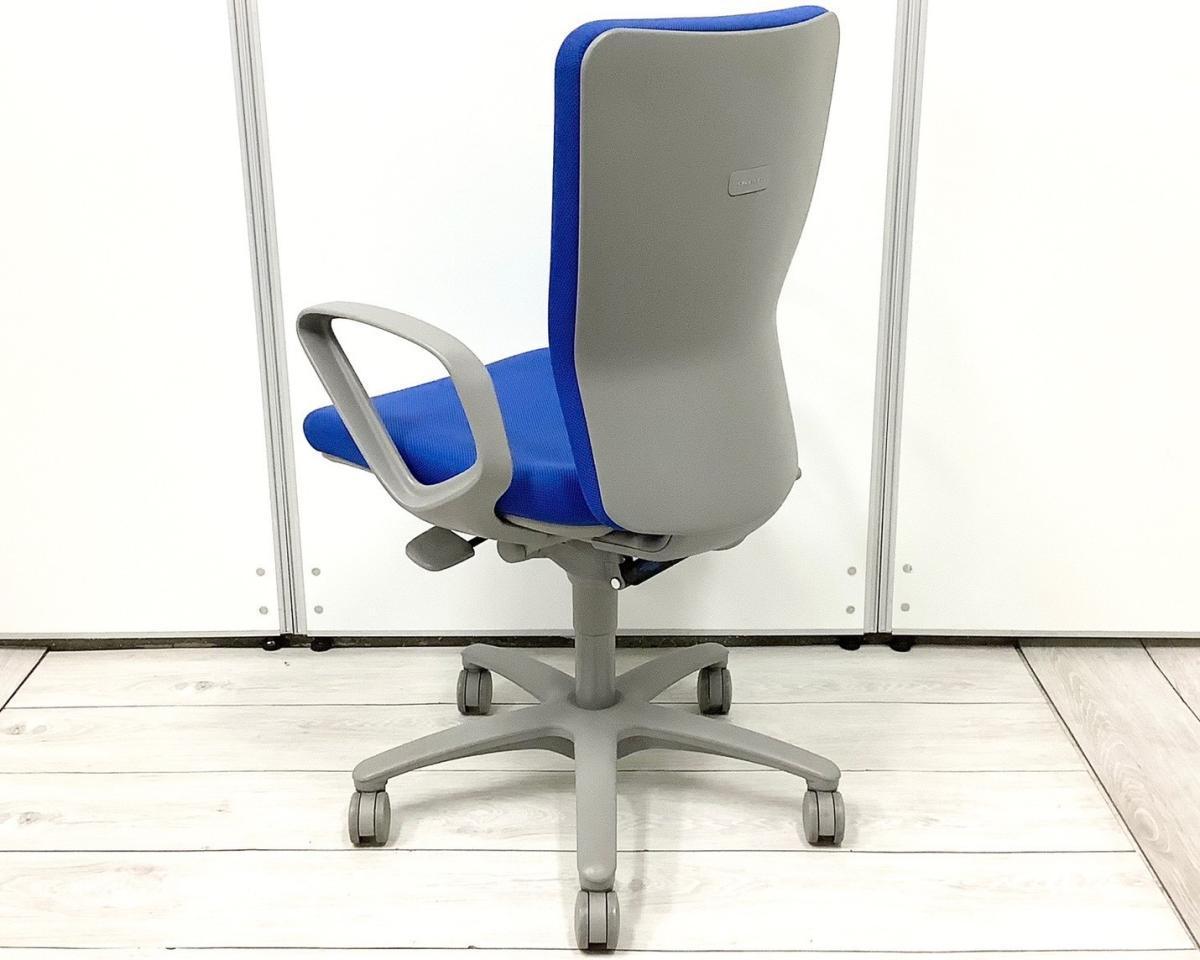 【長年愛されるロングセラー商品!厚めのクッションで疲れにくい!】■オカムラ(okamura)製 カロッツァチェア 肘付 ハイバック ■サークル肘 ■ブルー×グレーシェル