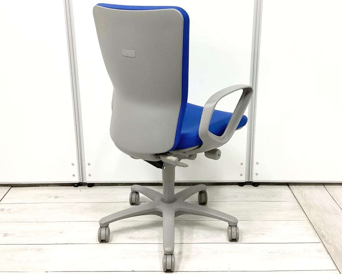 【4脚入荷】【長年愛されるロングセラー商品!厚めのクッションで疲れにくい!】■オカムラ(okamura)製 カロッツァチェア 肘付ハイバック ■サークル肘 ■ブルー × グレーシェル