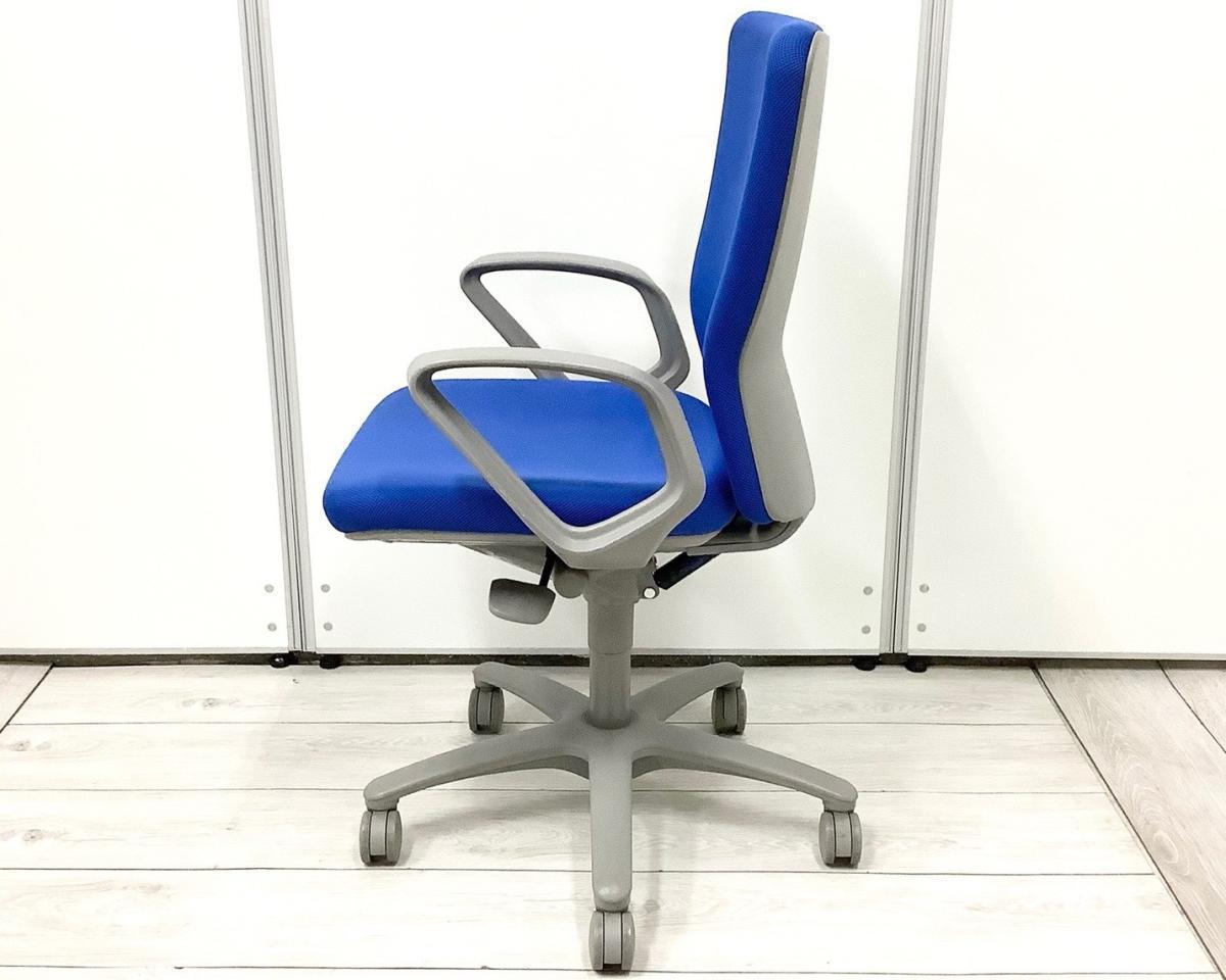 【長年愛されるロングセラーチェア! 厚めのクッションで疲れにくい!】■オカムラ(okamura)/カロッツァ 肘付ハイバック ■サークル肘 ■ブルー×グレーシェル