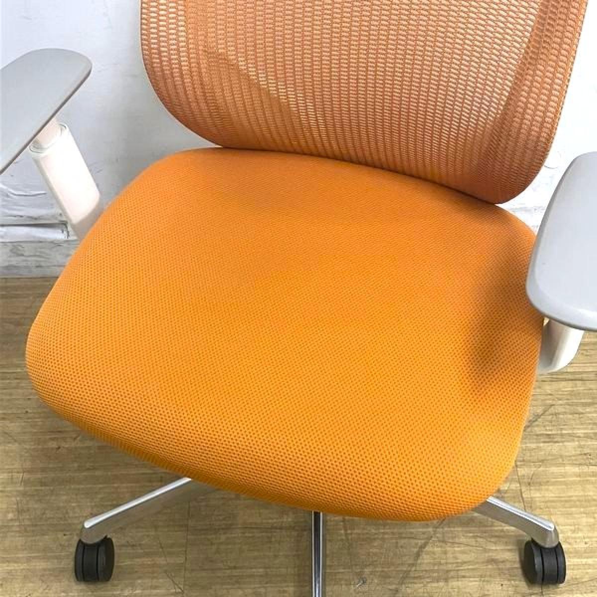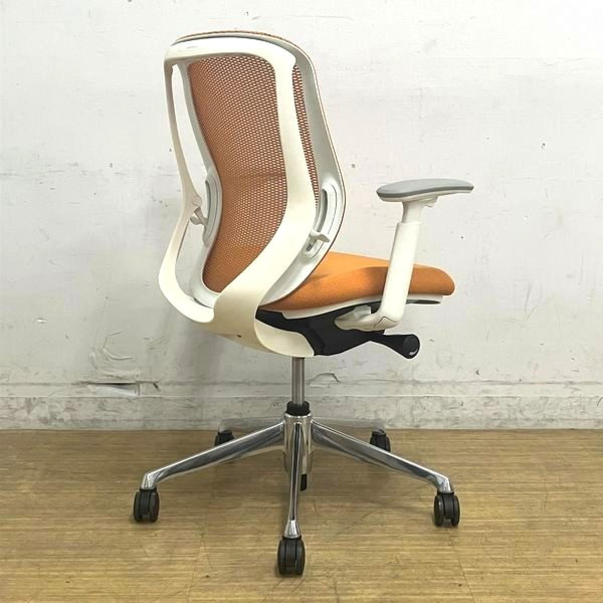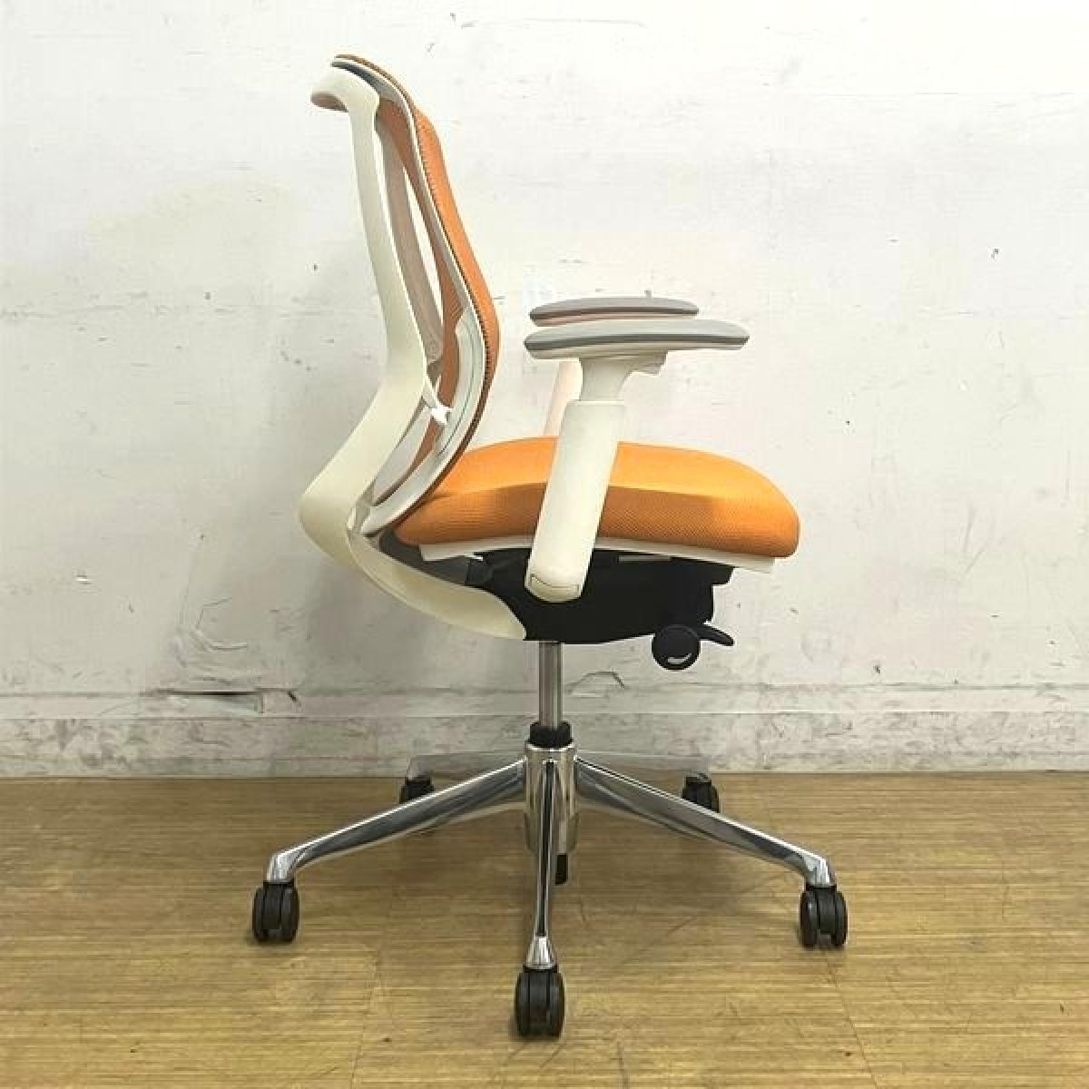 【2020年製】オカムラ シルフィー ローバック メッシュタイプ アジャストアーム搭載 オレンジ×ホワイトフレーム ポリッシュ脚 前傾機能搭載の人気モデル