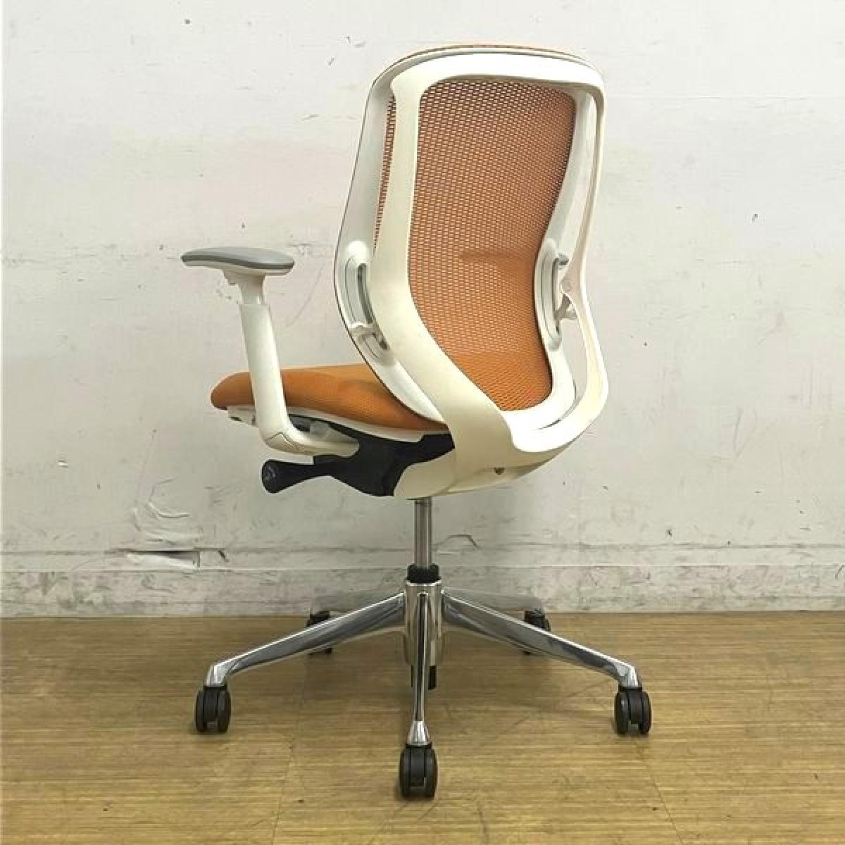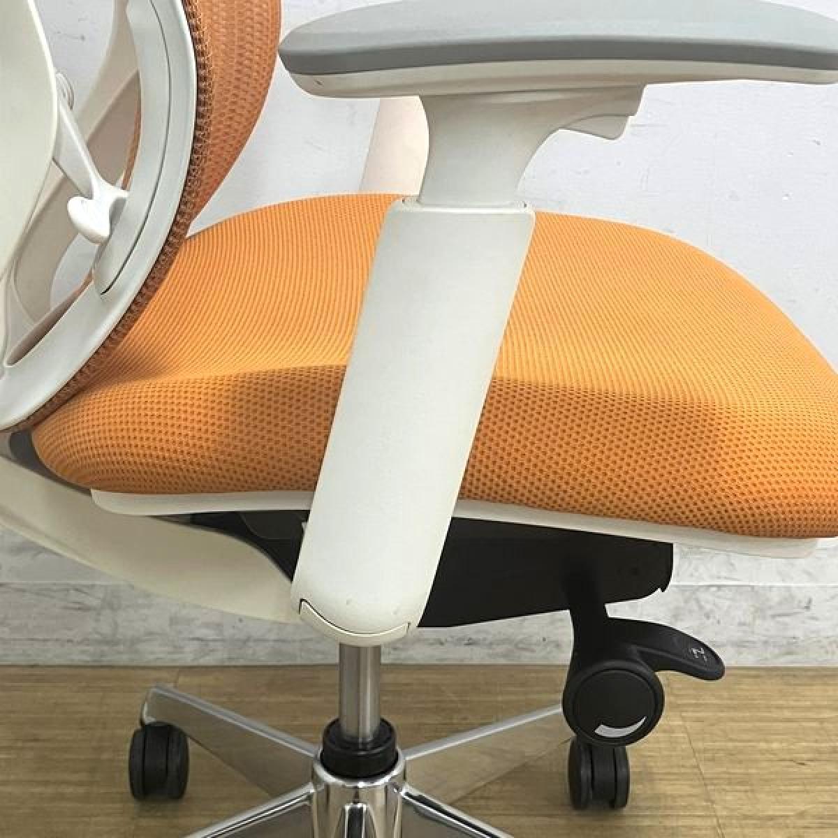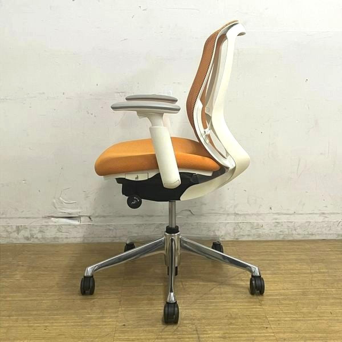 【2020年製】オカムラ シルフィー ローバック メッシュタイプ アジャストアーム搭載 オレンジ×ホワイトフレーム ポリッシュ脚 前傾機能搭載の人気モデル