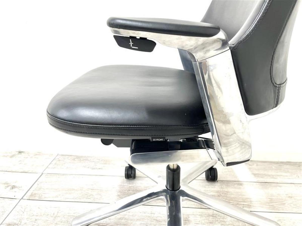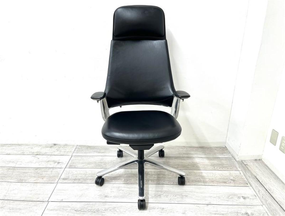 【定価約30万円超え】【高級感と重厚感のあるエグゼクティブチェア!】■イトーキ(ITOKI) レオニス(LEONIS) 肘付ハイバック ■固定肘 ■レザー ヘッドレスト付 ■ブラック- 在庫数