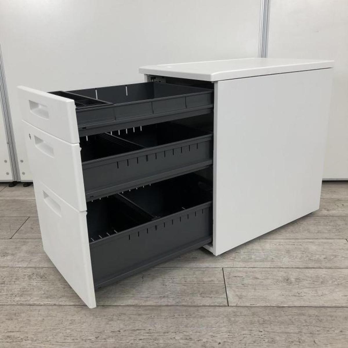 【平机・フリーアドレスデスクのお供に最適なデスクインワゴン!】■コクヨ(KOKUYO)製 ピクサ2シリーズ 3段ワゴン デスクインワゴン H610mm ■ホワイト ■キャスター付き ■シリンダー錠