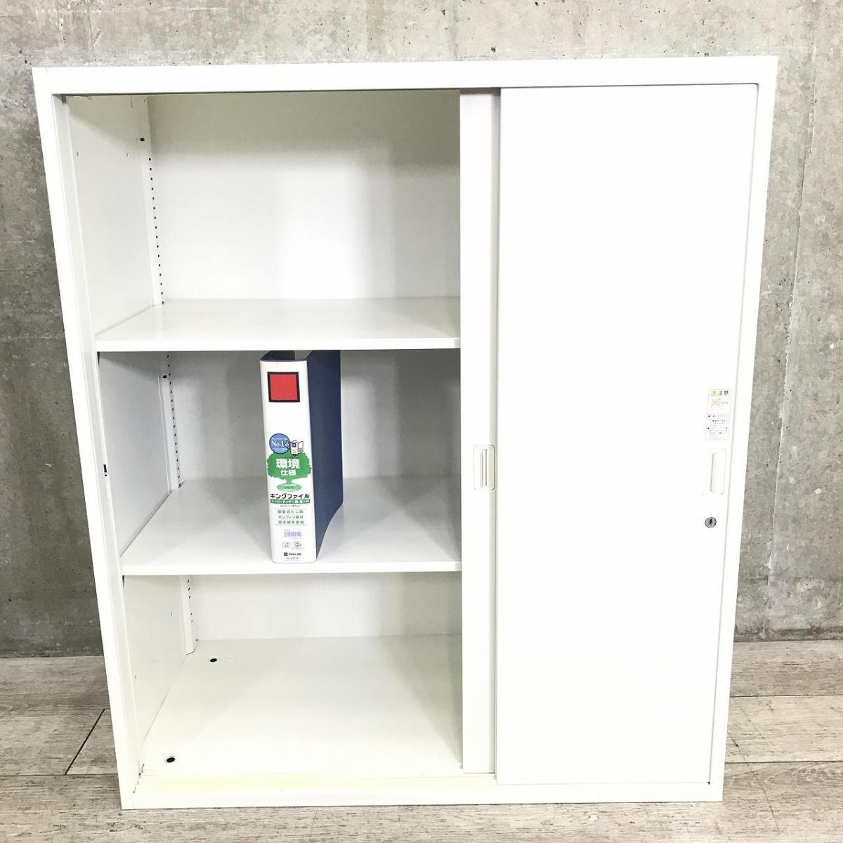 2枚引き戸書庫 オカムラ レクトライン 鍵付き シリンダー錠 ホワイト 天板無し スライド式の扉のため導線を邪魔しません【愛知・名古屋・豊田・静岡・浜松】