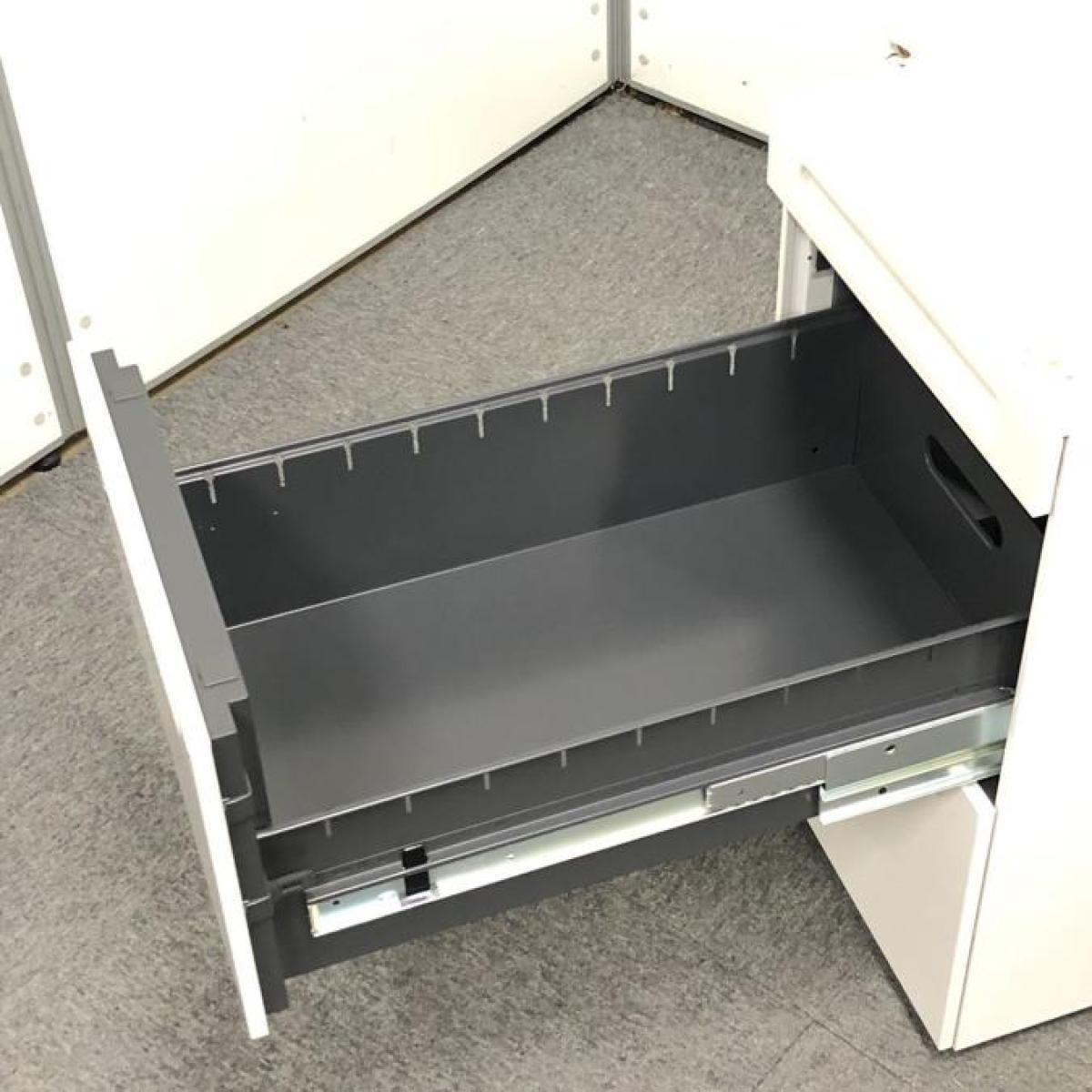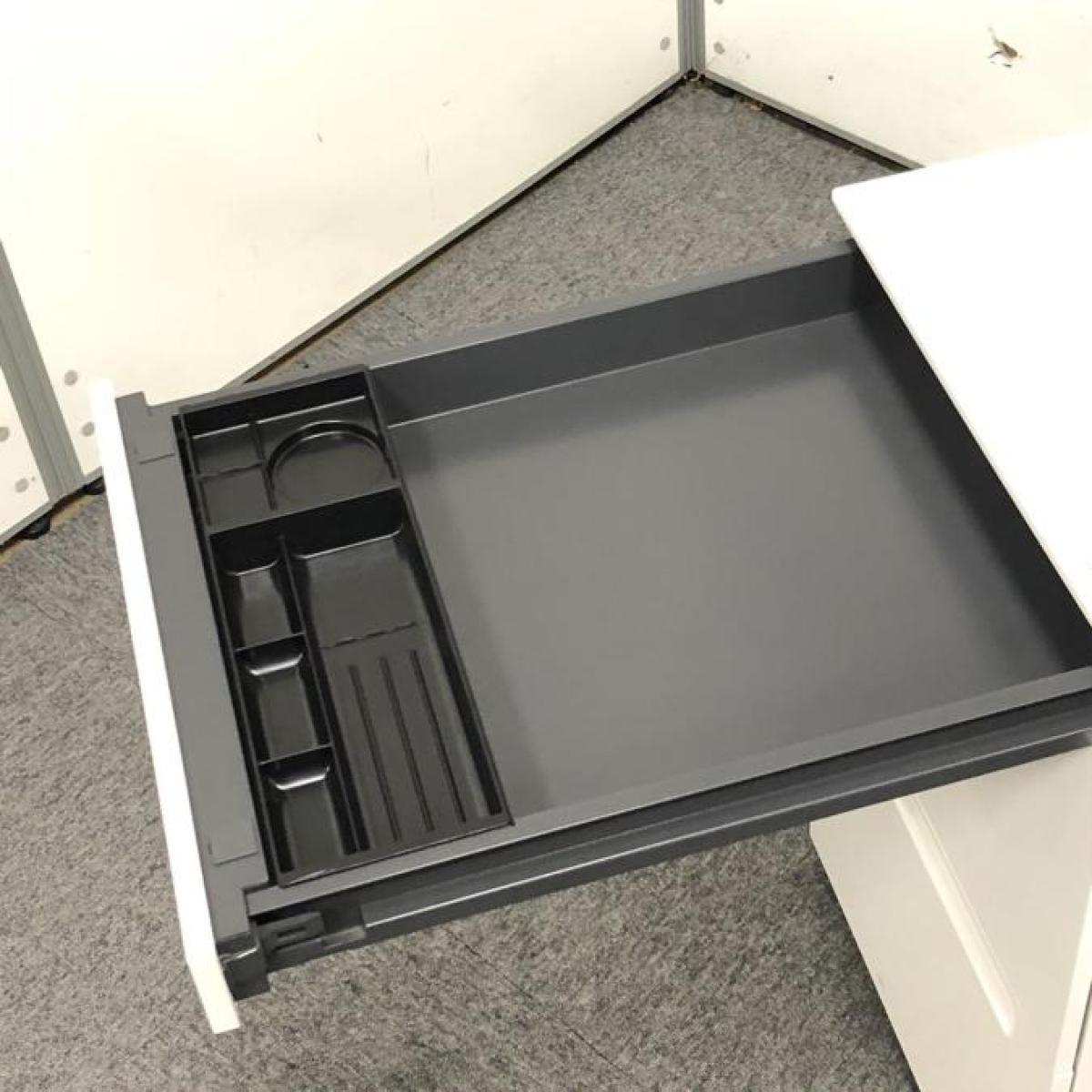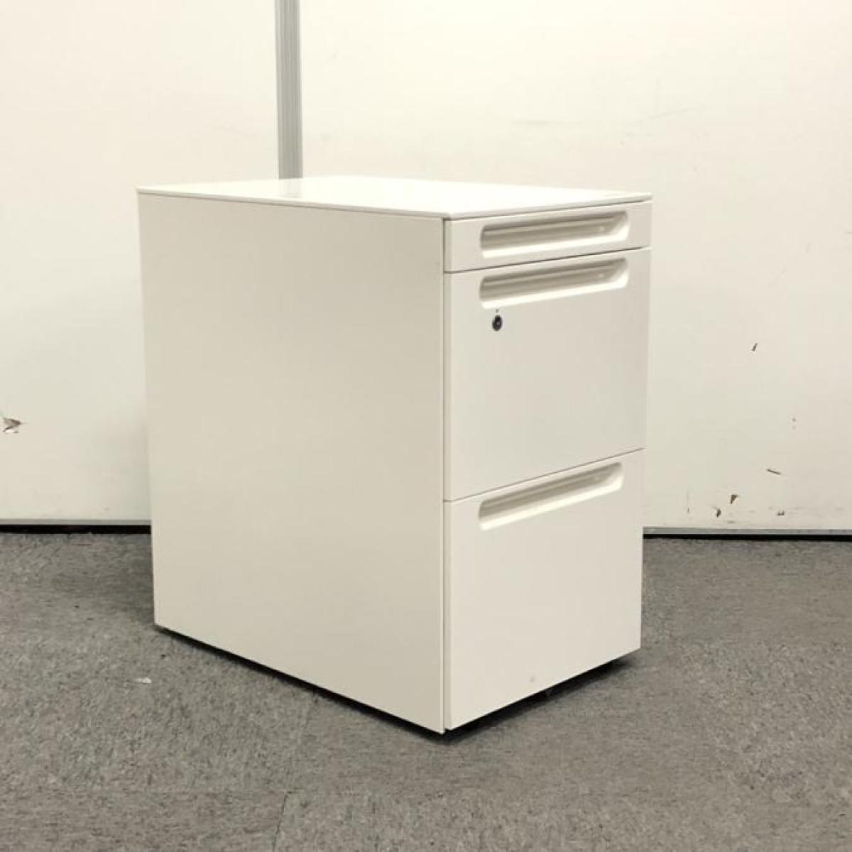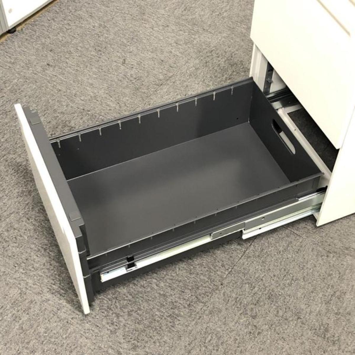 【フリーアドレスデスクや平机のお供に!収納力抜群の3段ワゴン】■クロガネ(KUROGANE)製 3段ワゴン フリアド用ワゴン H650㎜ ■シリンダー錠 ■ホワイト オフィスバスターズ 神戸店- 在庫数