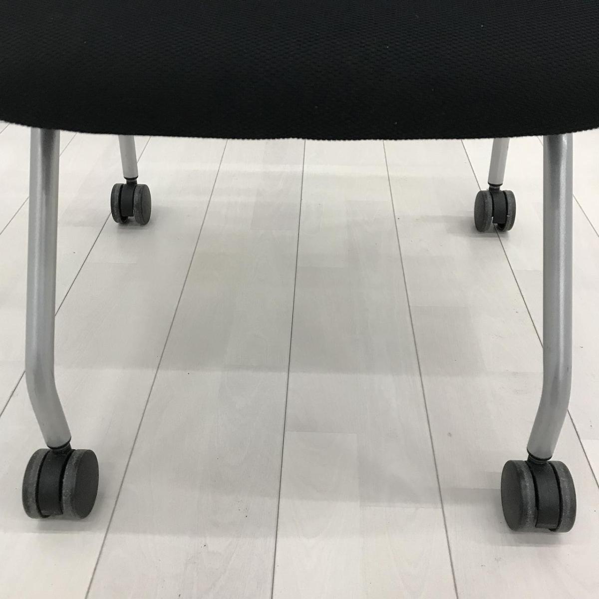 【疲れにくく快適な座り心地を追求!平行スタックで省スペース!】■イトーキ(ITOKI)製 イプサシリーズ ネスティングチェア ミーティングチェア ■キャスター付 ■色:ブラック- 春日部・越谷店