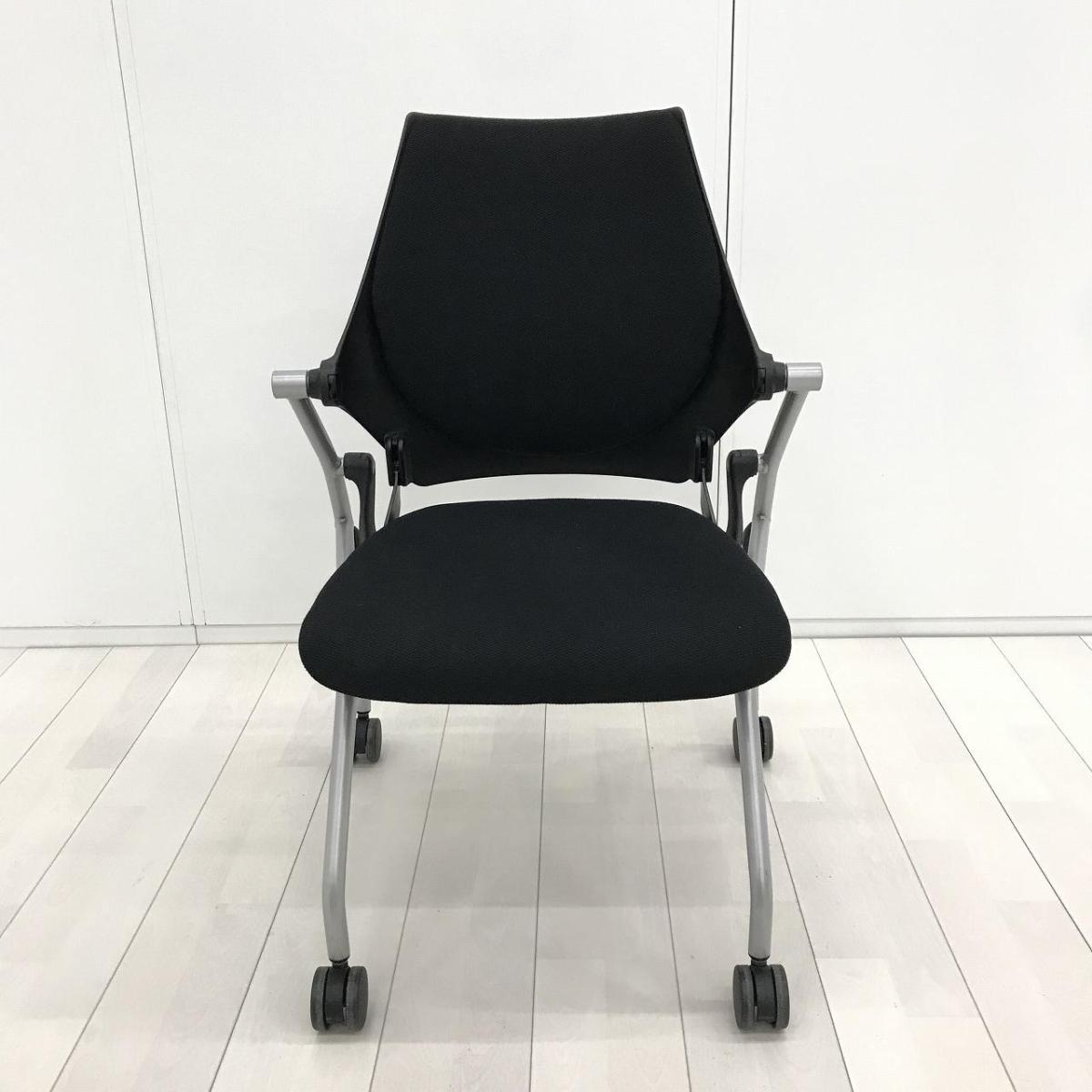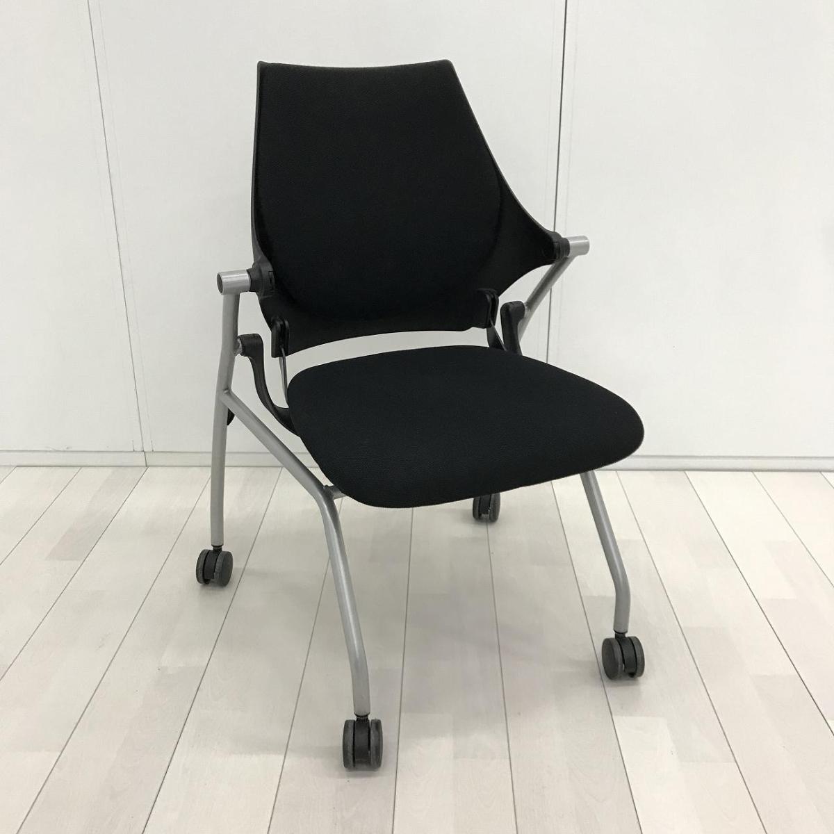 【在庫入替セール品!(本在庫限定価格)】疲れにくく快適な座り心地を追求!平行スタックで省スペース!■イトーキ(ITOKI)製 イプサシリーズ ネスティングチェア ミーティングチェア ■キャスター付 ■色:ブラック【弊社使用欄:A01045873】【HU】