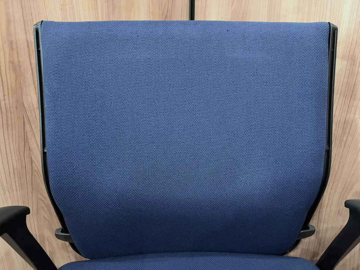 オカムラ エスクード ローバックモデル クッションタイプ デザインアーム付き ブルー×グレーフレーム ランバーサポート搭載で安定感のある機能面と座り心地