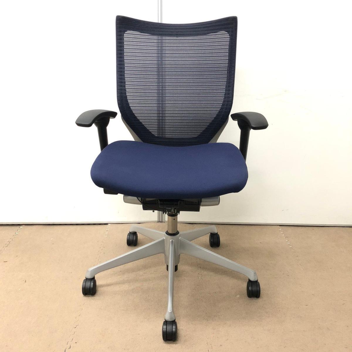 【座面が大人気!国産メッシュチェアの代表格!】■オカムラ(okamura)製 バロン(Baron)チェア ローバック 肘付き ■背面メッシュ ■固定肘 ■色:ダークブルー ■ハンガー付き