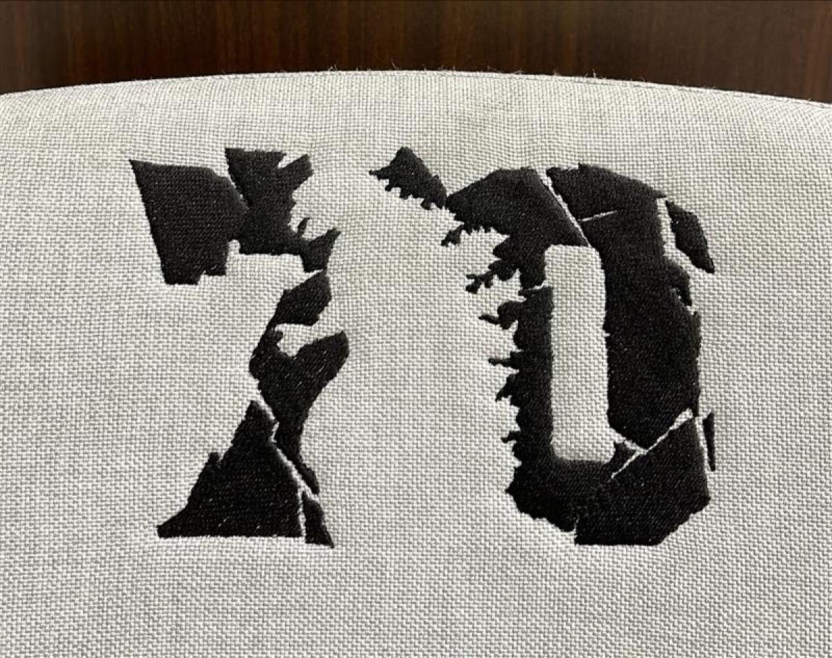 背面に澁谷 忠臣氏によるキービジュアルの刺繍を配しています。