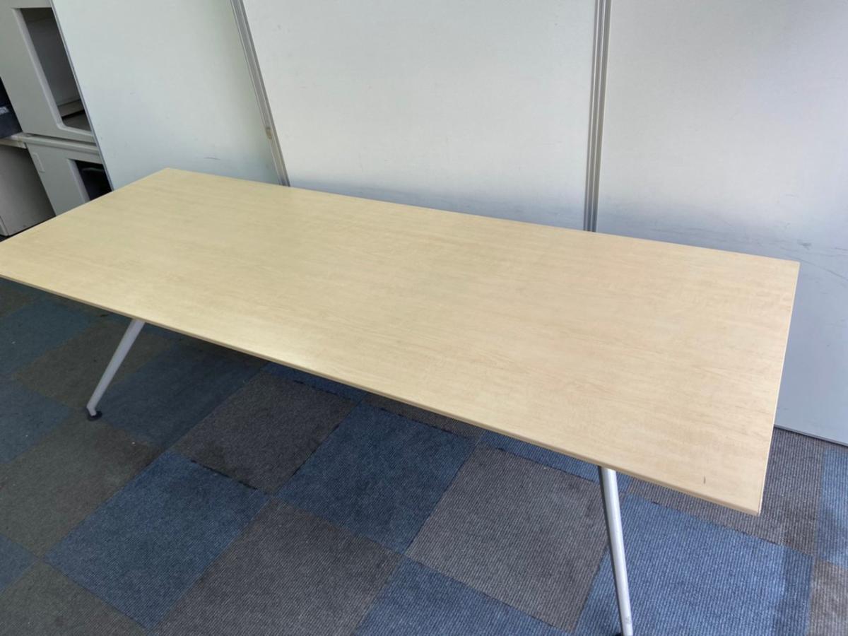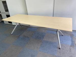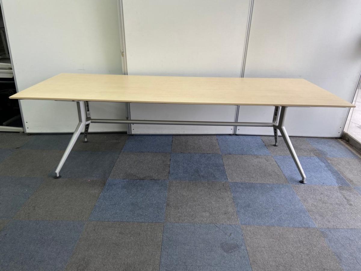 【在庫入替セール】【1台のみ】【会議室だけでなく休憩室でも!6~8名様対応・大型テーブル】■イトーキ(ITOKI) DDDシリーズ ミーティングテーブル 会議テーブル 幅2400×奥行900mm ■木目ナチュラル天板 脚シルバー色 オフィスバスターズ東大阪店【K1】- 東大阪店