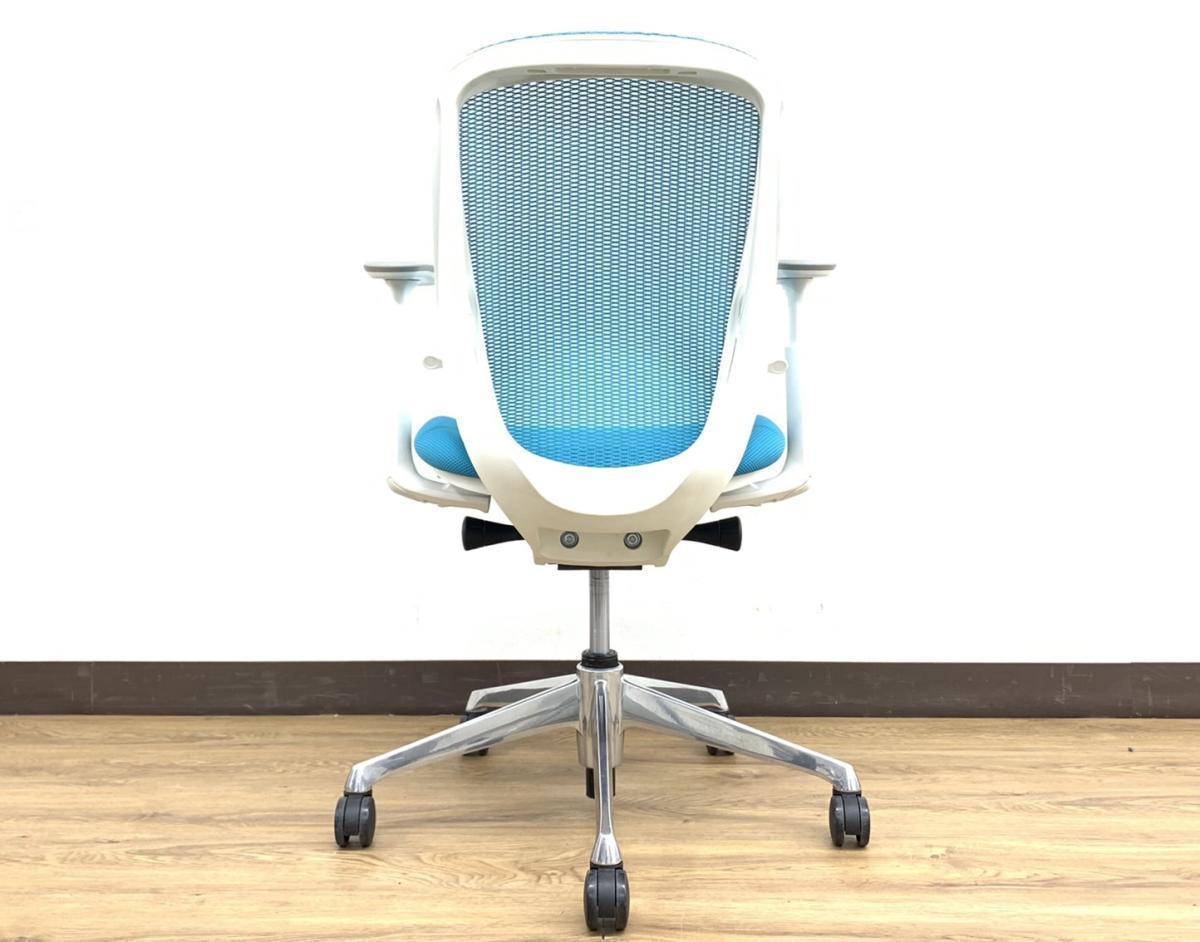 ■オカムラ(okamura)製 ■シルフィ(Sylphy)チェア ■ブルー× ブラックシェル ■肘付き/可動肘 ■ローバック ■背面/メッシュ ■座面/布 ■オススメ/大人気/定番商品 【弊社使用欄:A01044064 K】【SN】