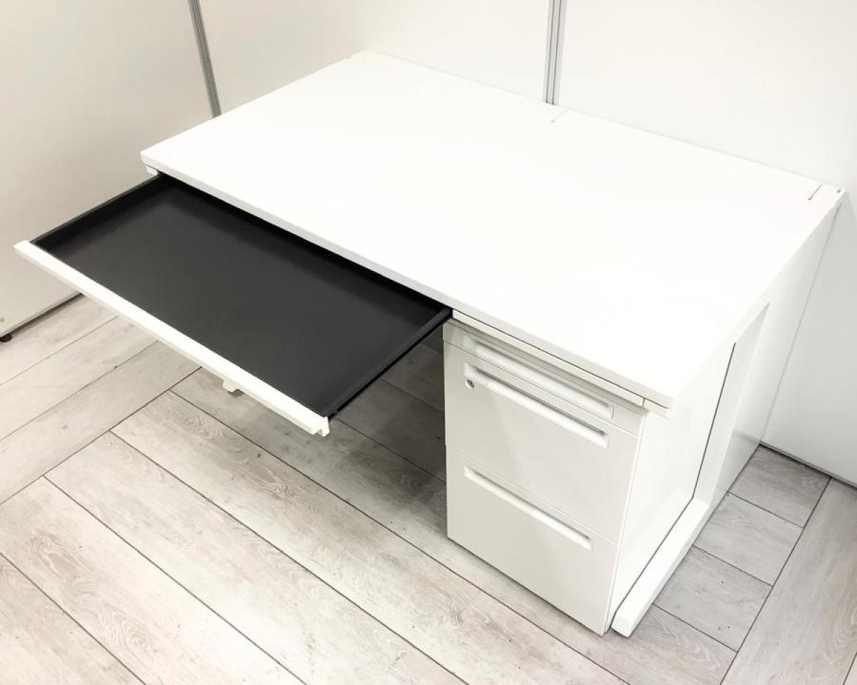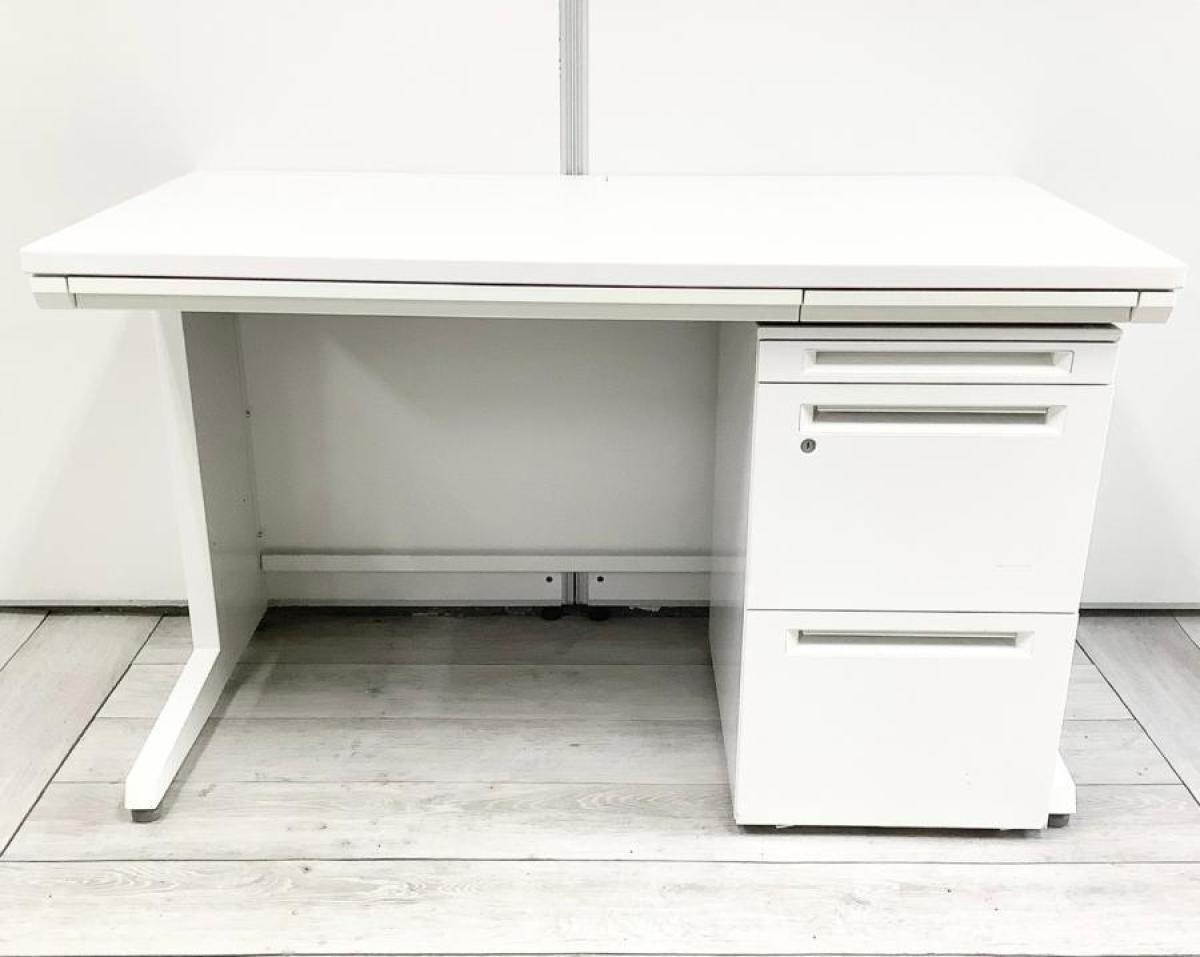 オカムラ アドバンス 片袖机 ホワイト 鍵付き シリンダー錠 定番で使いやすいW1200サイズ ※部材欠け・日焼けが散見されます