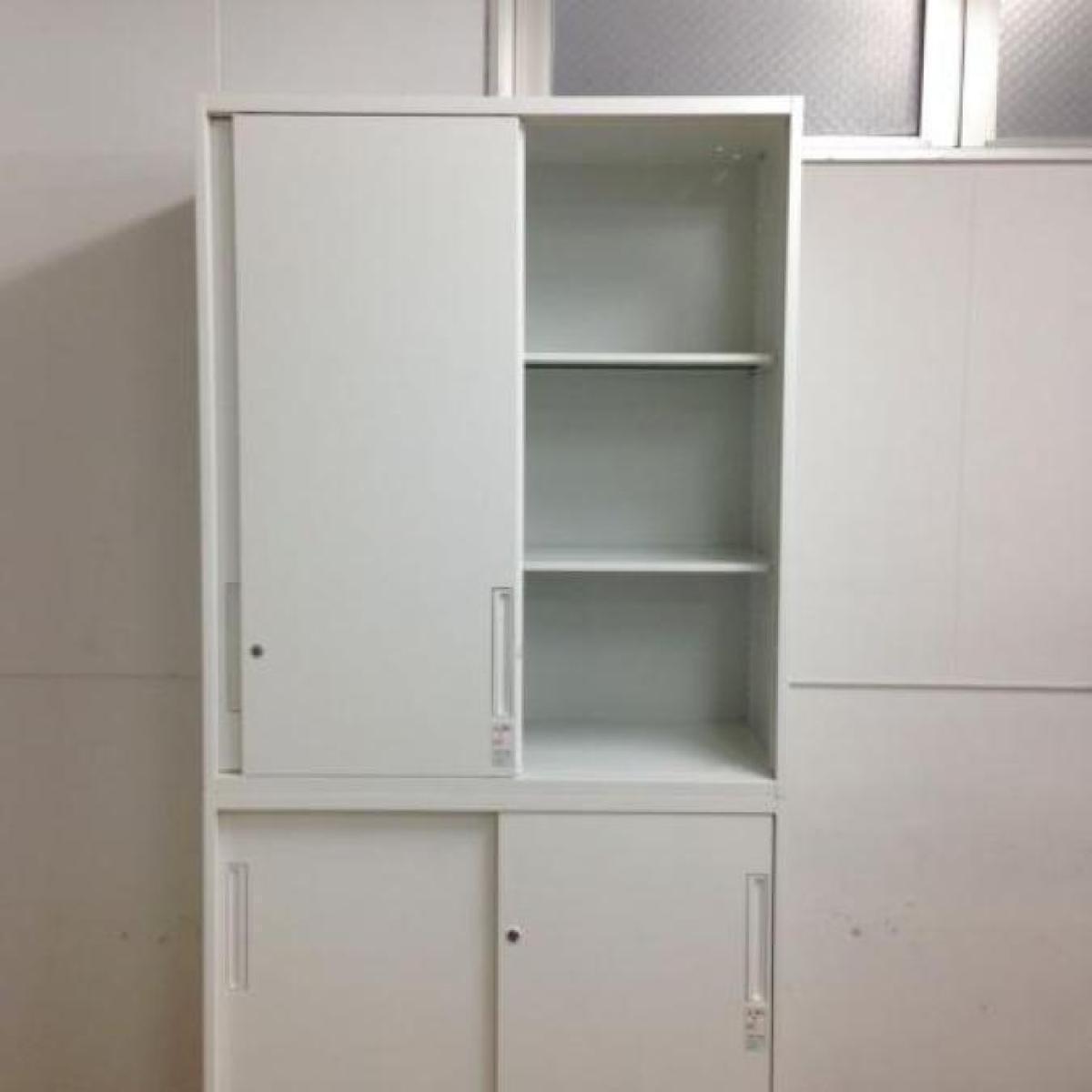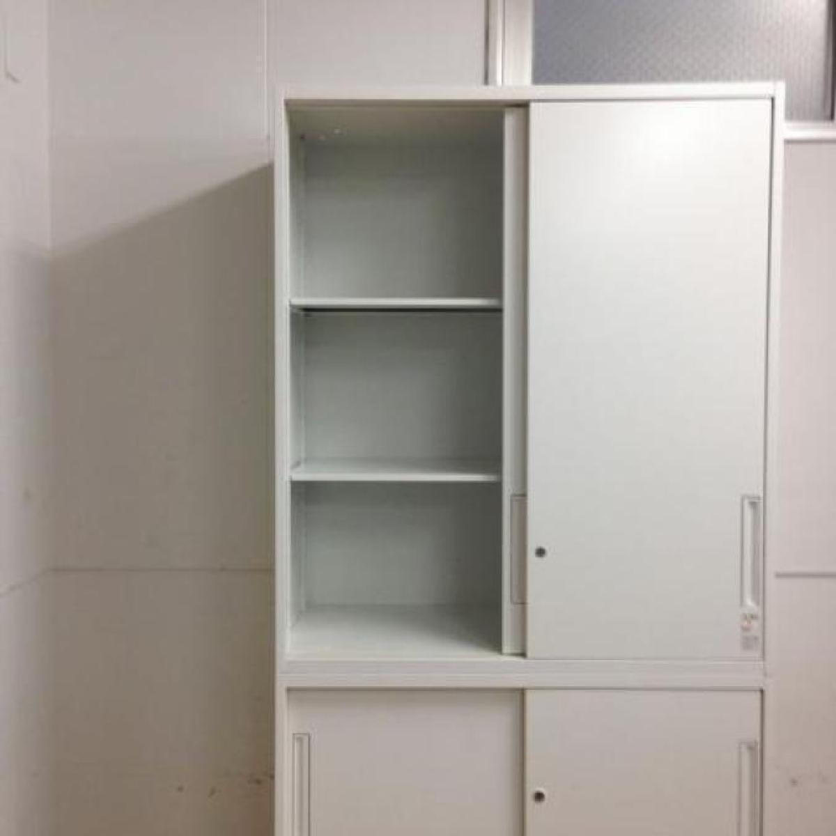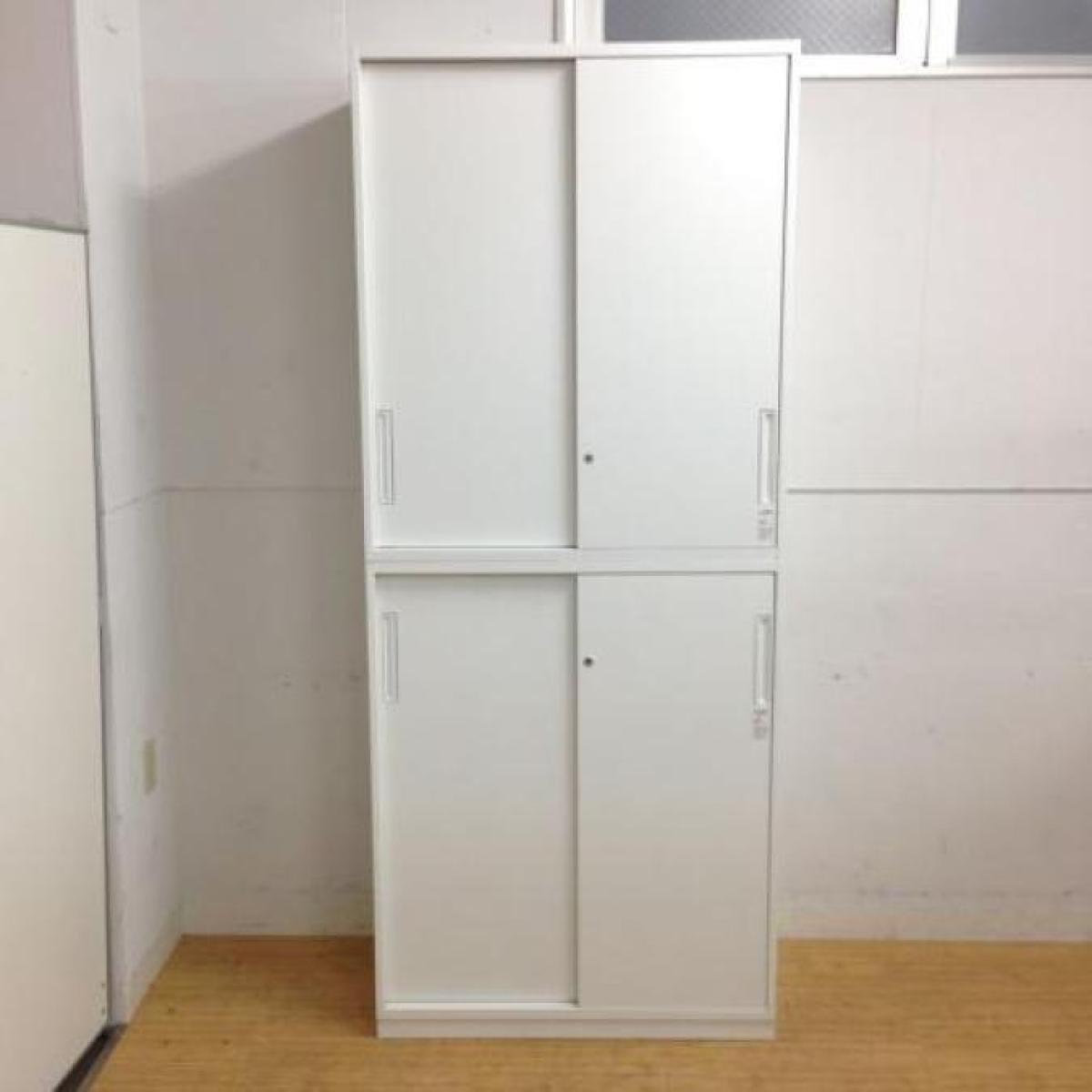 【2台入荷】人気のエディアシリーズ入荷!中古 キャビネット 書庫 ロッカー 棚 ホワイト オフィス コクヨ 引き違い H2160 上下書庫 書庫セット 倉庫在庫