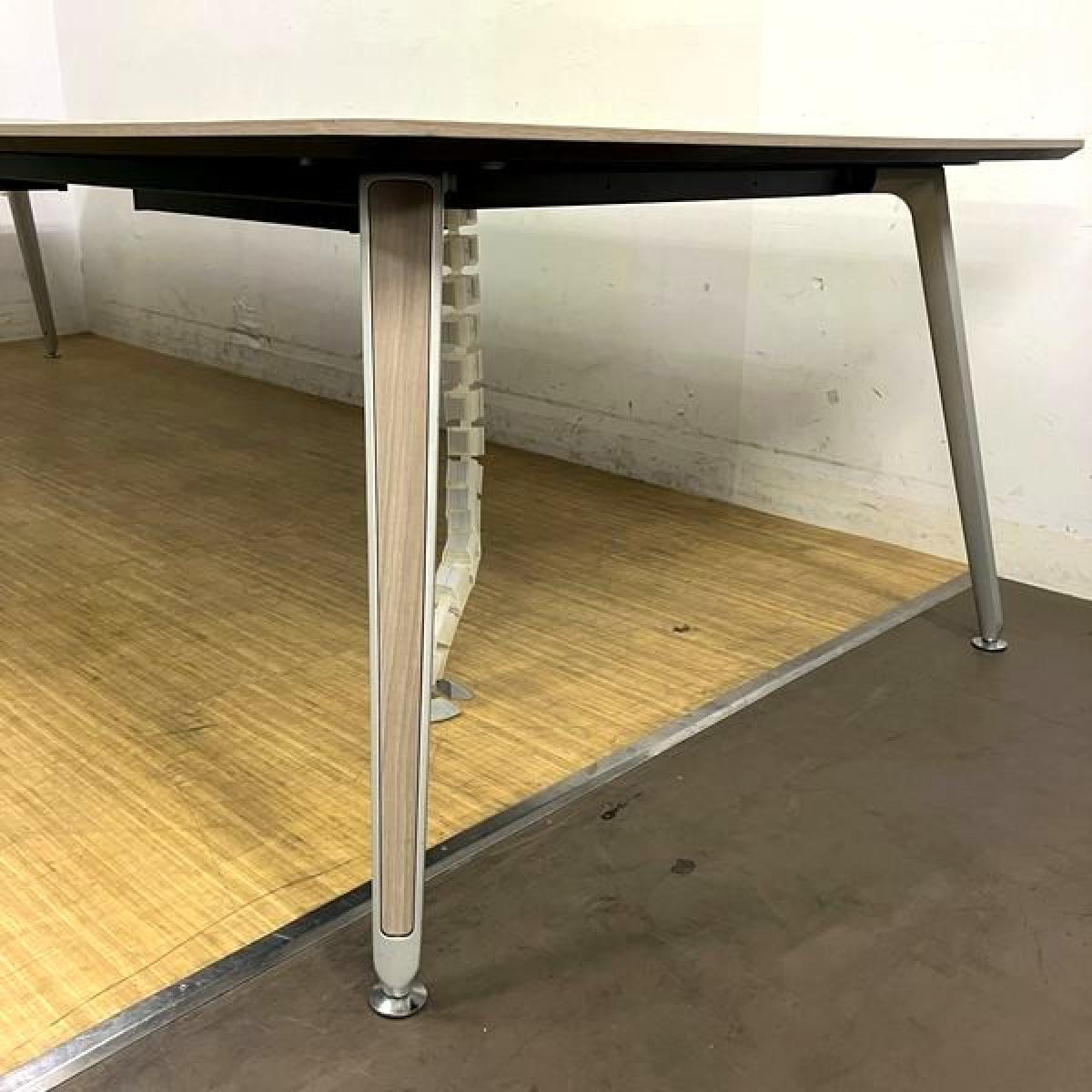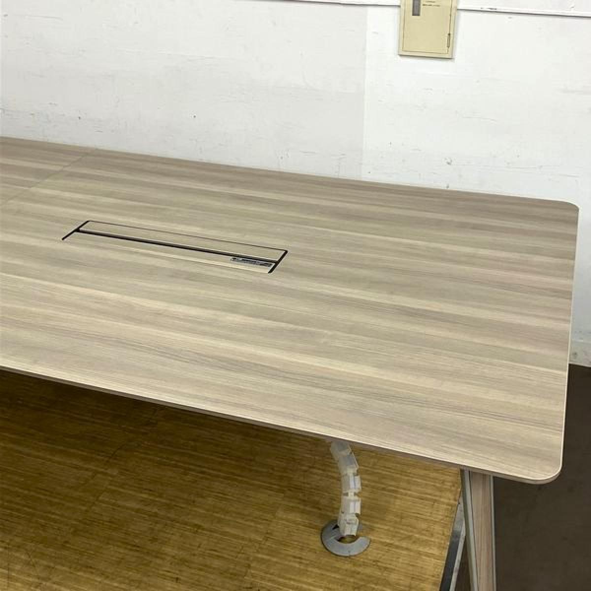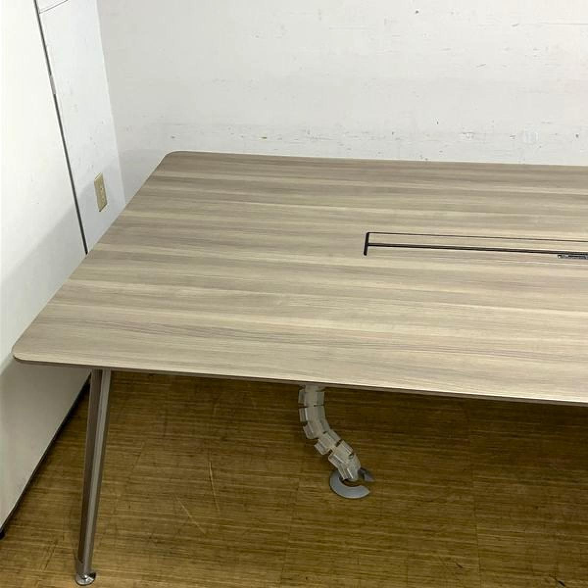 【定価70万円越え】オカムラ 高級会議テーブル プリシード ボックス配線付き W3200×D1200 おしゃれな木目プライズウッドミディアム色 塗装脚 8名様推奨サイズ- 名古屋千種店