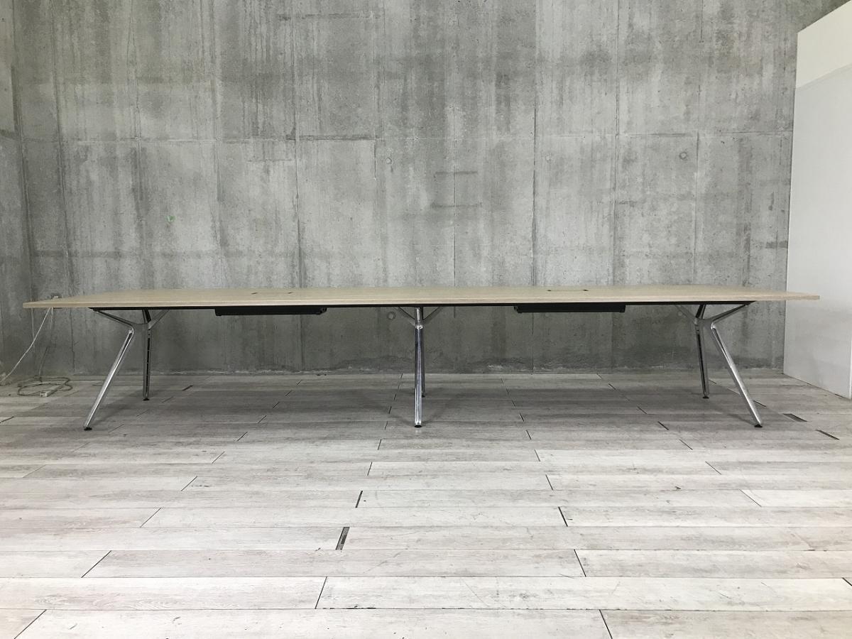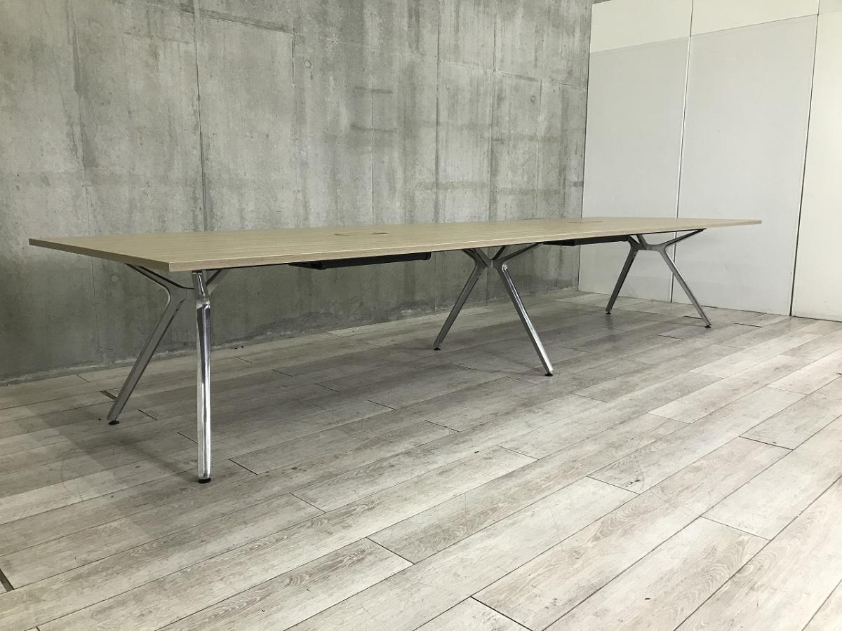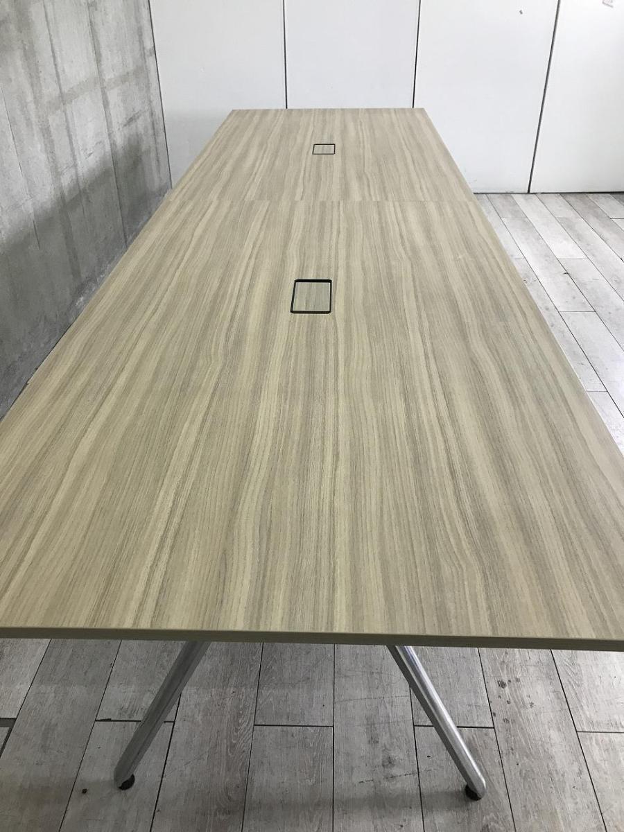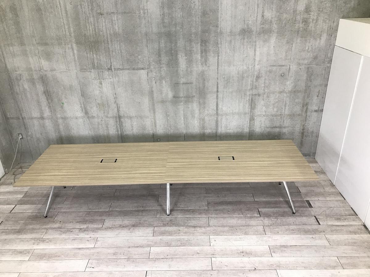 【幅4000㎜・洗練された上質なデザインの大型テーブル!】■イトーキ(ITOKI)製 DZシリーズ 会議用テーブル ミーテイングテーブル W4000×D1200㎜ ■配線口あり ■木目調ナチュラル天板 ※2枚天板のため搬入もしやすい!- 茨城南店