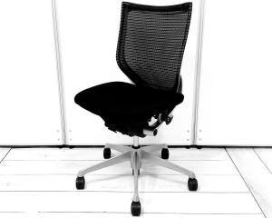 ■オカムラ製 肘無しバロンチェア ローバック ブラック ホワイトフレーム【AD】