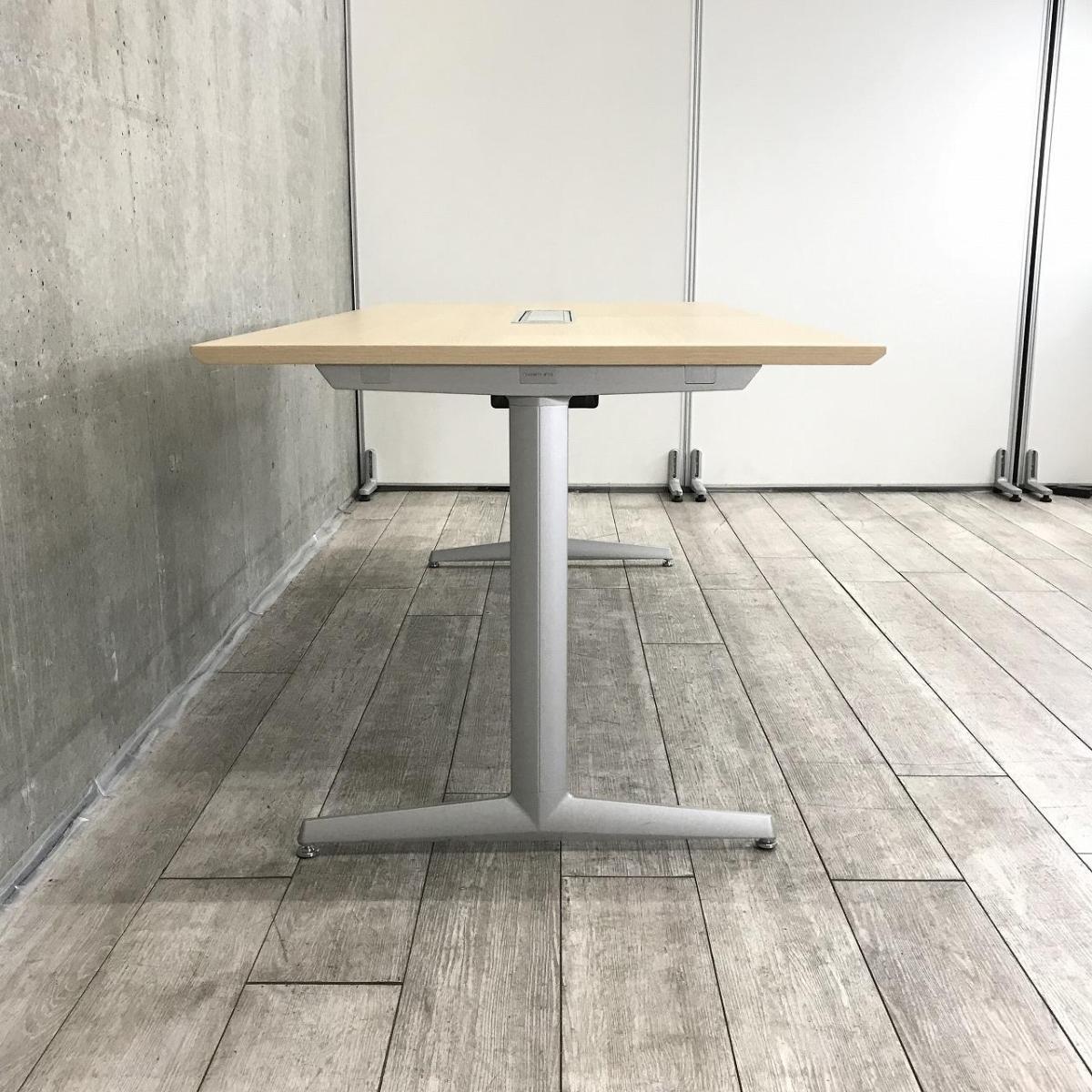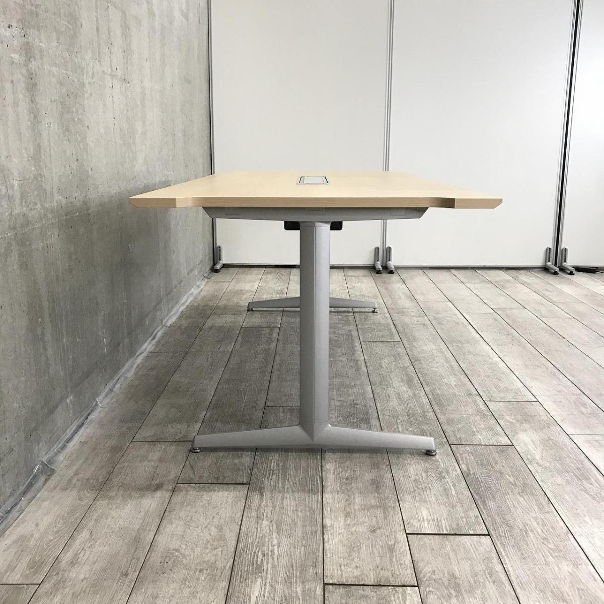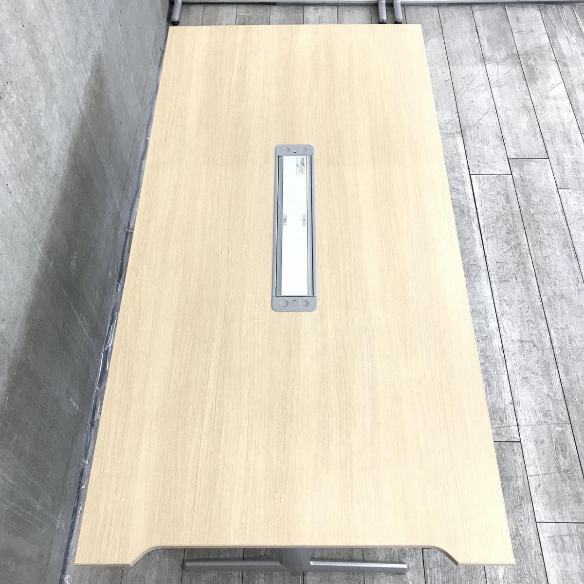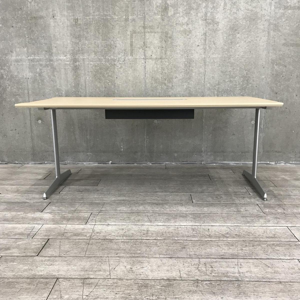 【4人~6人用の会議・打合せ用のテーブルとして最適!】■オカムラ製 プレスタシリーズ(Bresta) ミーティングテーブル W1800×D900㎜ ■木目調ナチュラル天板 ■配線口あり ■T字脚- 足立・葛飾店
