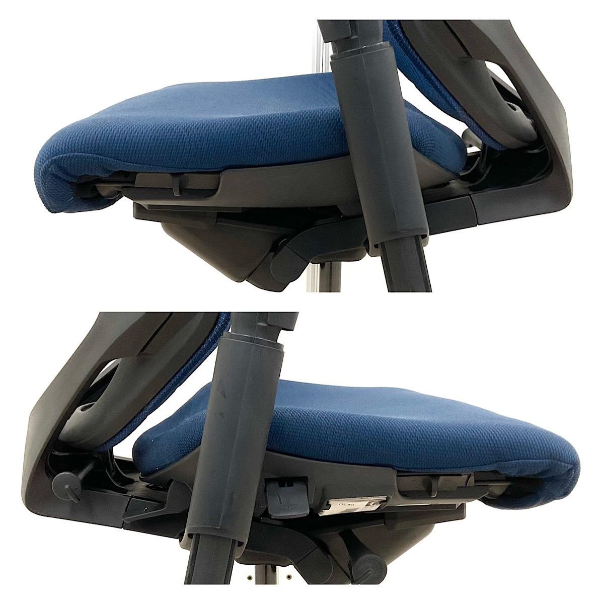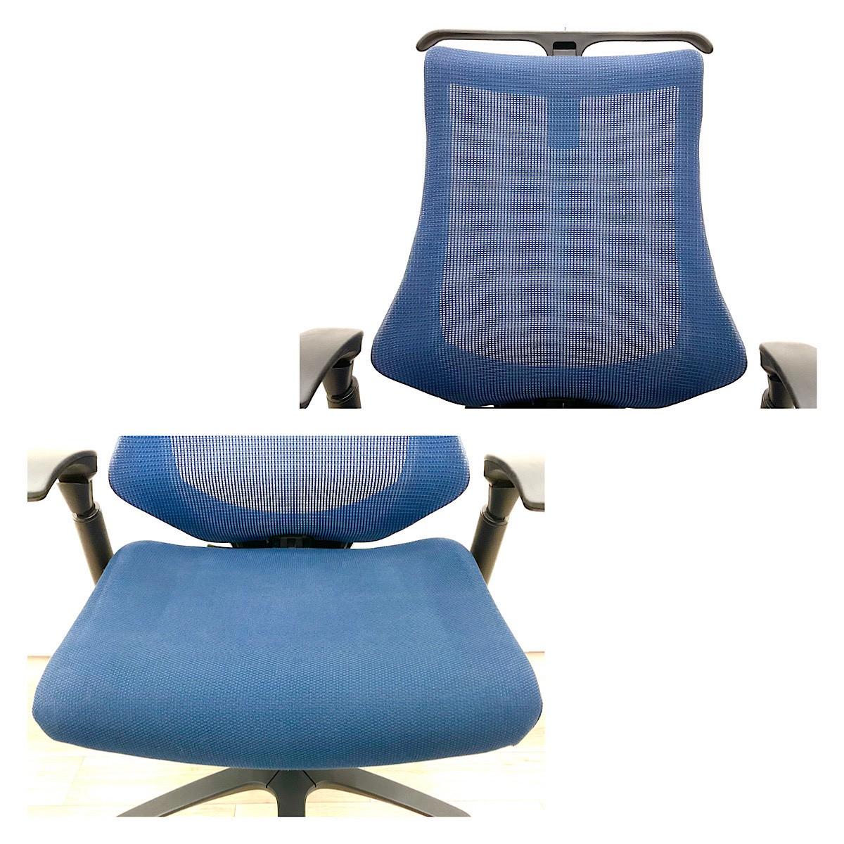 【重複】【姿勢の変化にフレキシブルに対応!スタイリッシュなデザインのメッシュチェア!】■イトーキ(ITOKI)製 エフ(f)チェア 肘付き ハイバック 背面メッシュ ■可動肘 ■ハンガー付き ■ストロングブルー×ホワイトシェル ※キズ、日焼けあり
