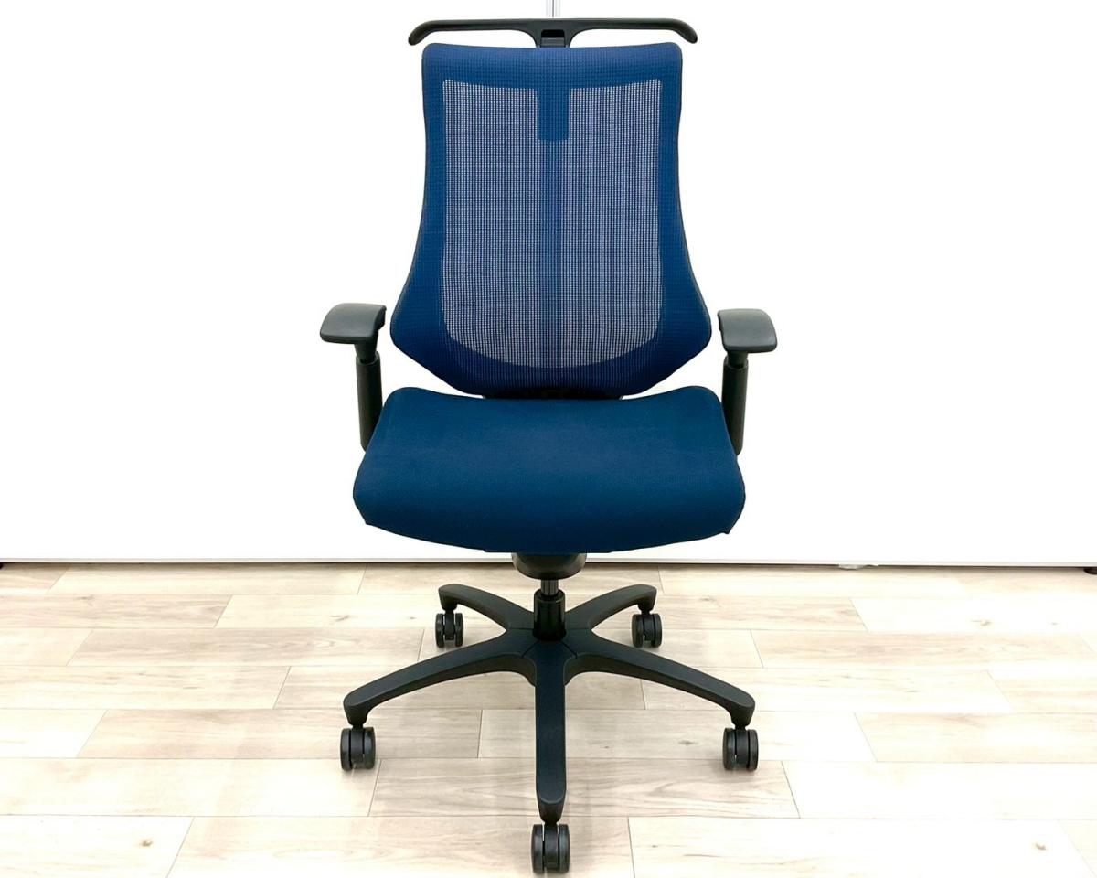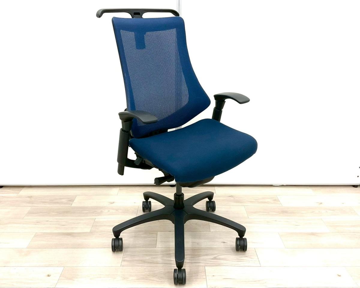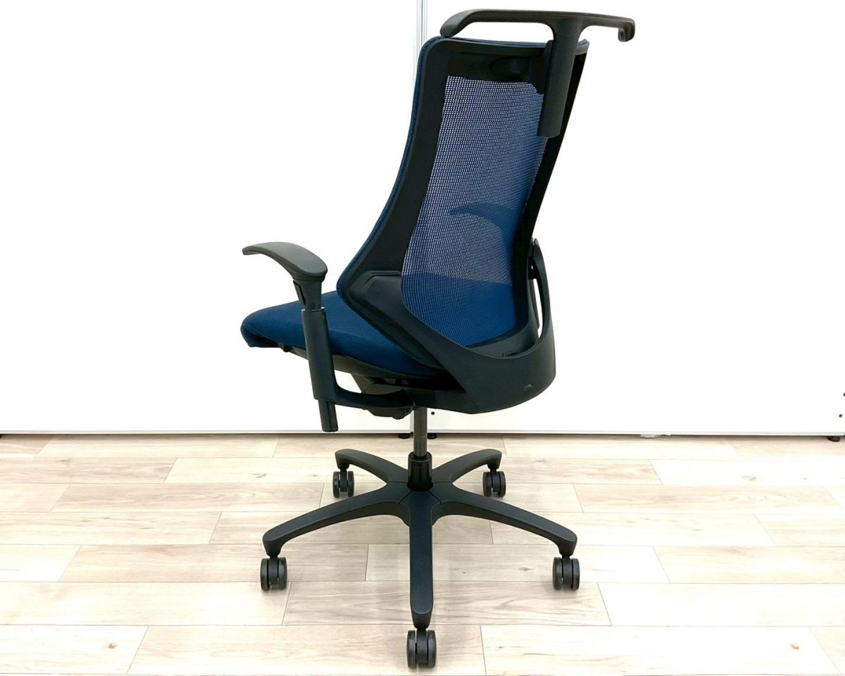 【姿勢の変化にフレキシブルに対応!スタイリッシュで座り心地も抜群な高機能チェア!】■イトーキ(ITOKI)製 エフ(f)チェア 肘付き ハイバック 背面メッシュ ■可動肘 ■ネイビーブルー ×ブラックシェル