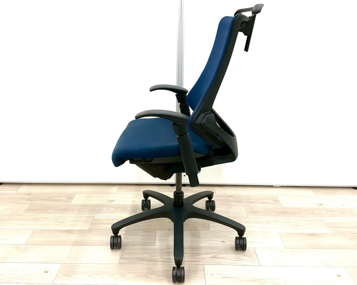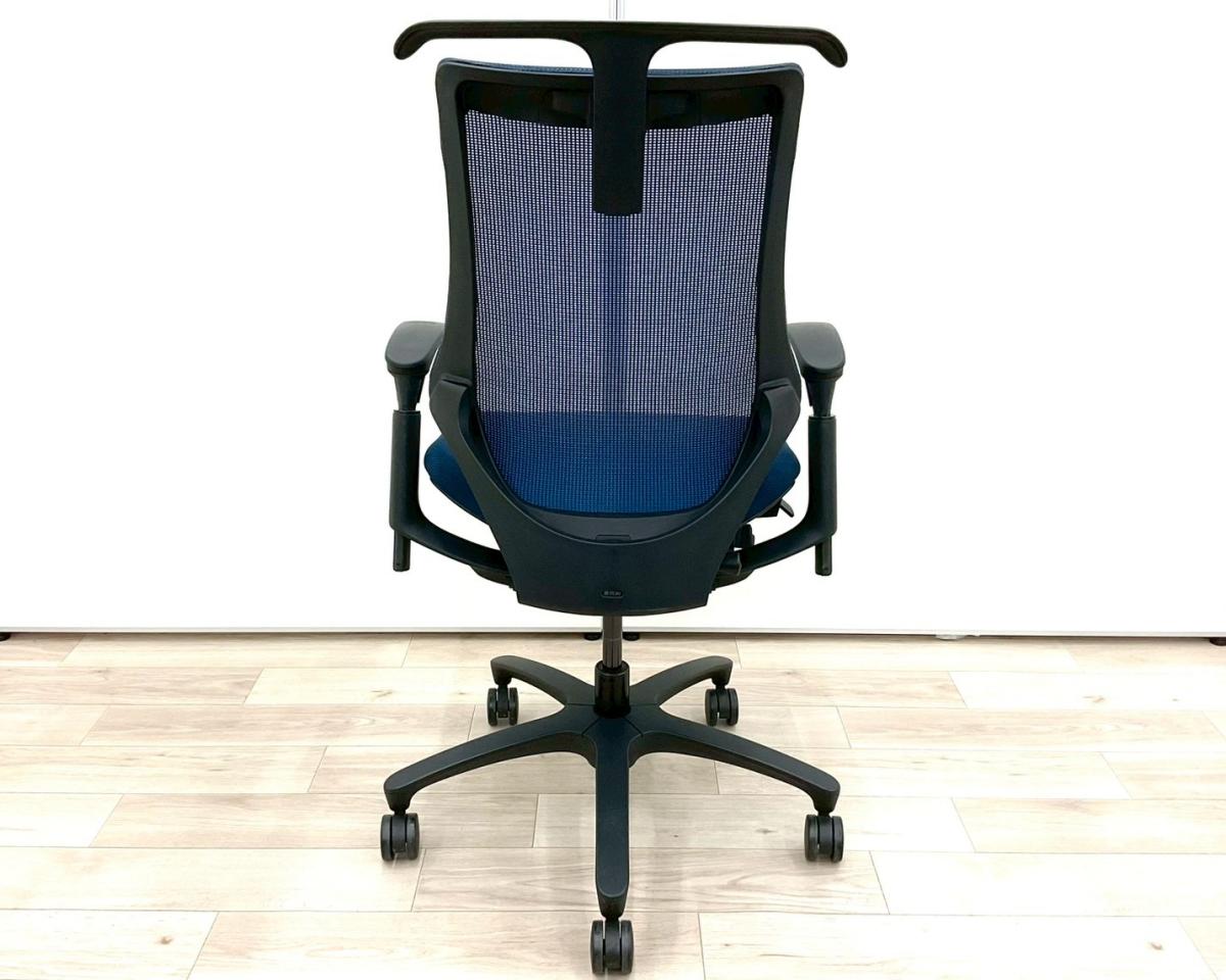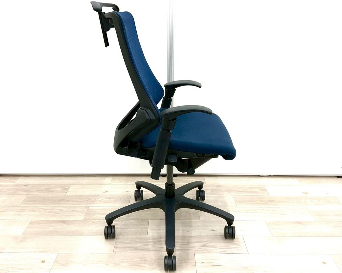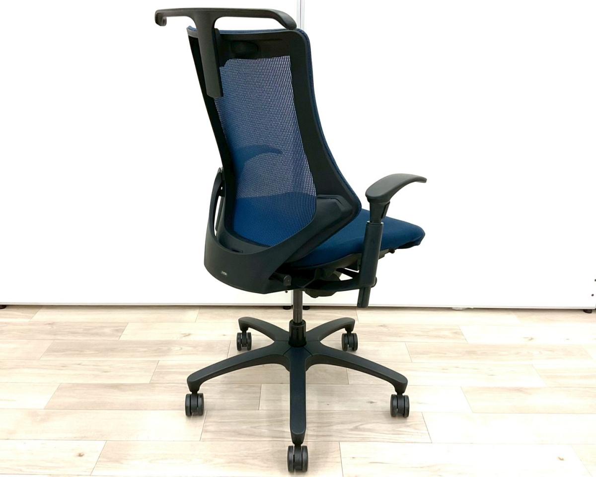 【姿勢の変化にフレキシブルに対応!スタイリッシュで座り心地も抜群な高機能チェア!】■イトーキ(ITOKI)製 エフ(f)チェア 肘付き ハイバック 背面メッシュ ■可動肘 ■ネイビーブルー ×ブラックシェル