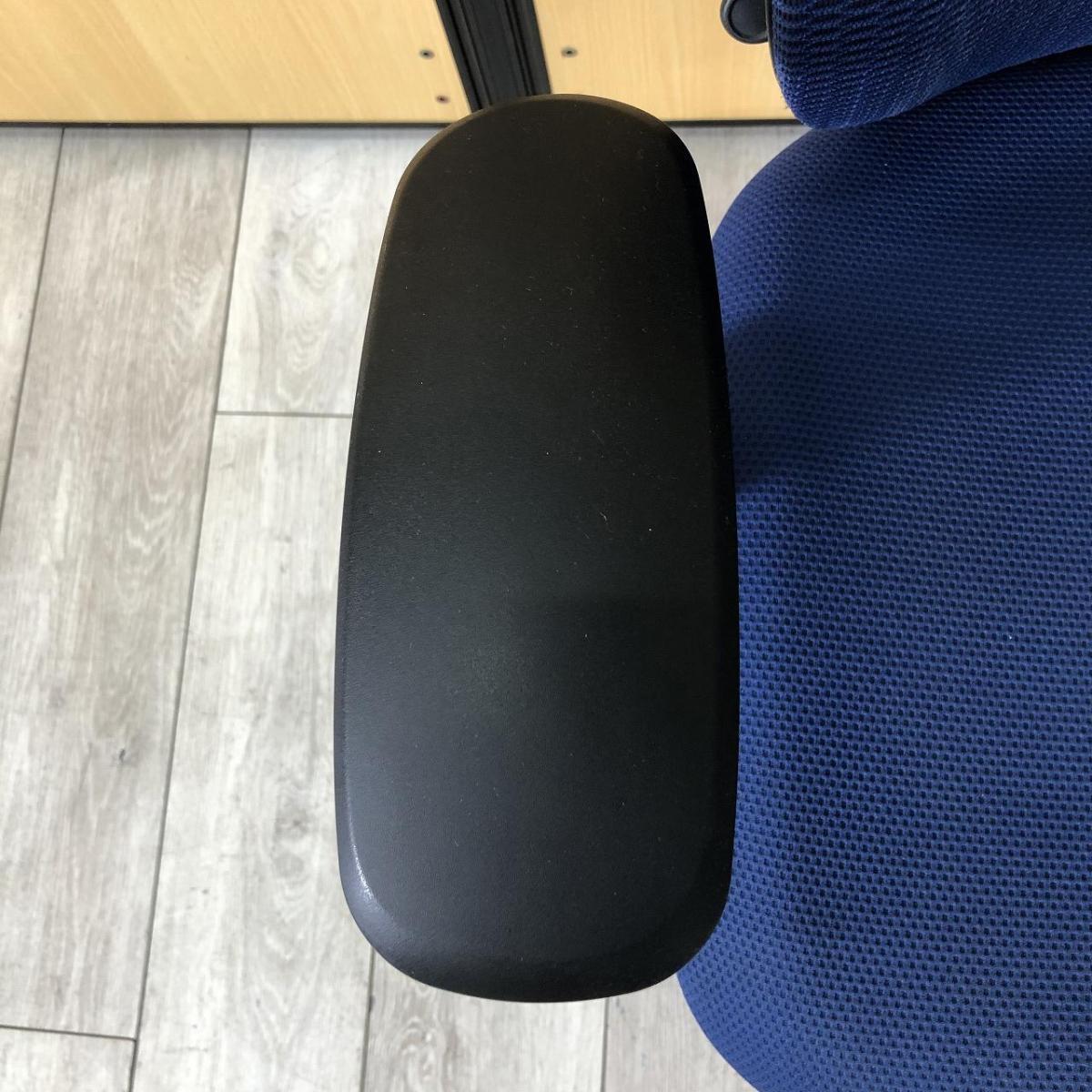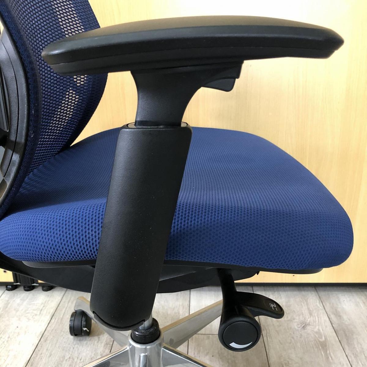 【三次元曲面が身体にフィット・前傾チルト機能付き!大人気メッシュチェア!】■オカムラ(okamura)製 シルフィー(Sylphy)チェア 肘付きハイバック ■背面メッシュ ■固定肘 ■ブルー×ブラックシェル