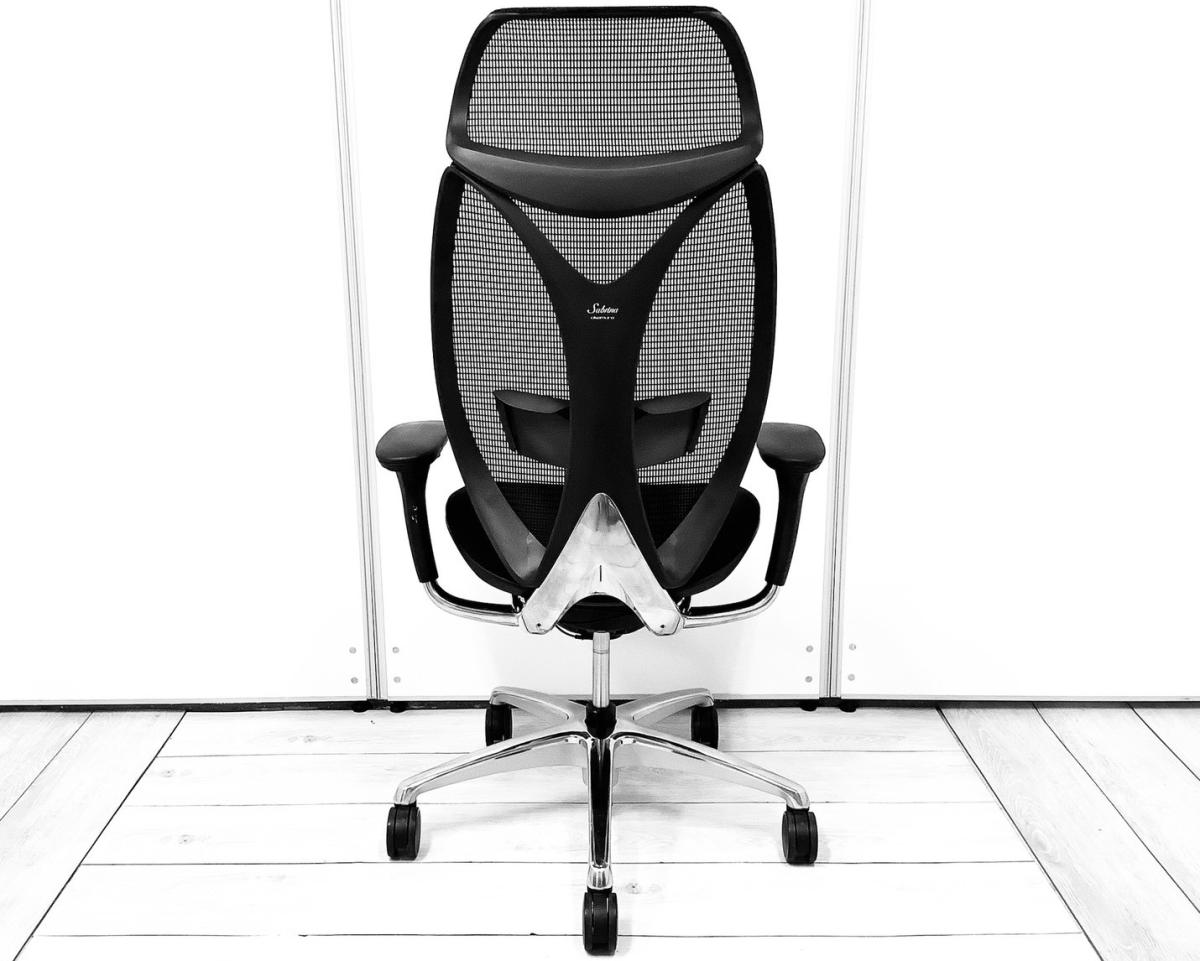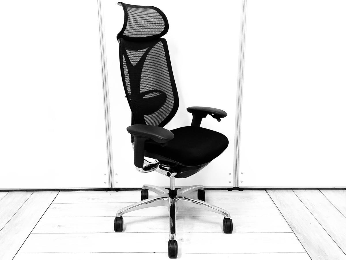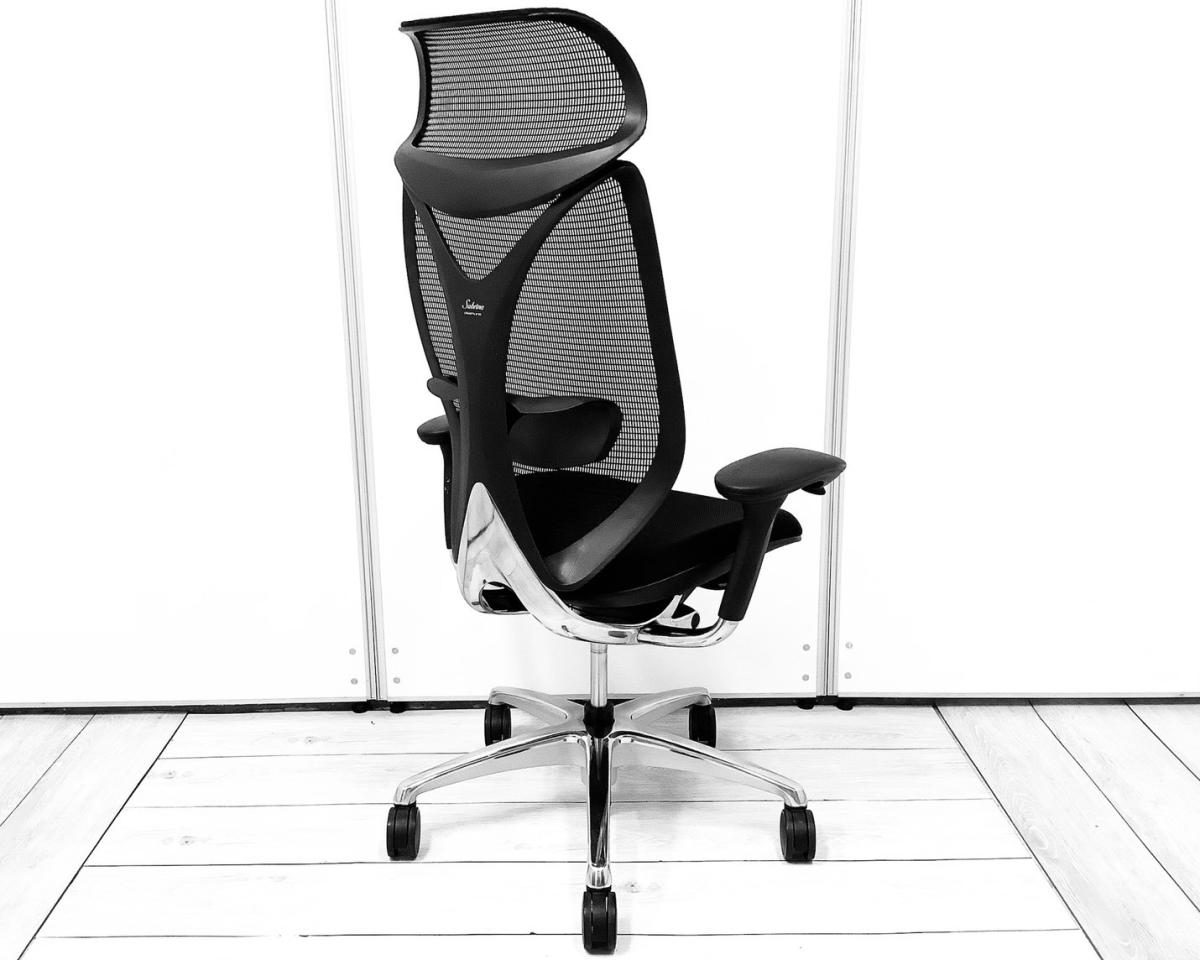 【前傾チルト機能付き!】【安定感のある座り心地で大好評の最高級メッシュチェア!】 ■オカムラ(okamura)製 サブリナ(Sabrina)チェア 肘付エクストラハイバック 背面メッシュ ■可動肘・ランバーサポート・ヘッドレスト付き ■ブラック【ご自宅用にもオススメ!】