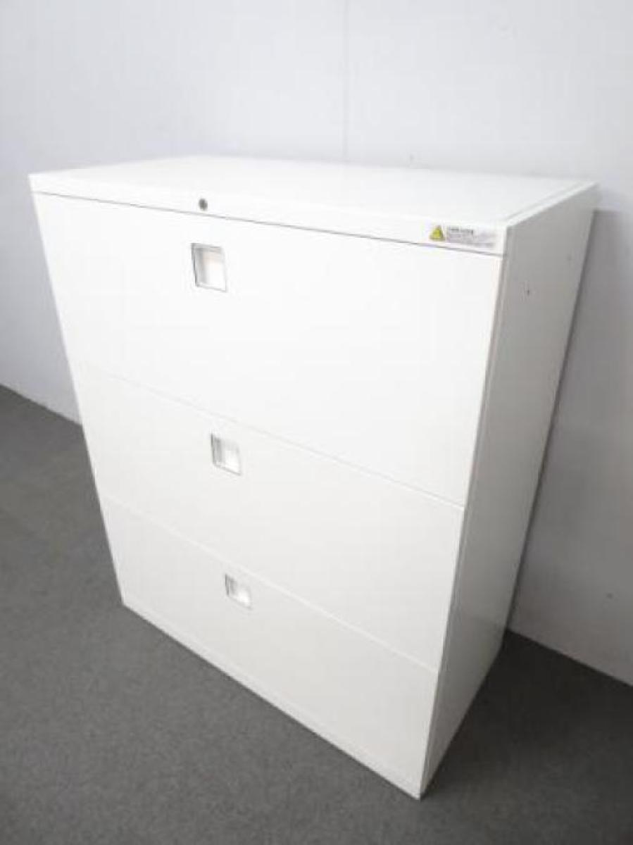 ★【T1】【T12】【商品入替のため、残り3台限り】オカムラ製 レクトライン ホワイト 高品質で使いやすい! 大容量の3段キャビネット! 3段ラテラル書庫!!【管理番号:A01032936】