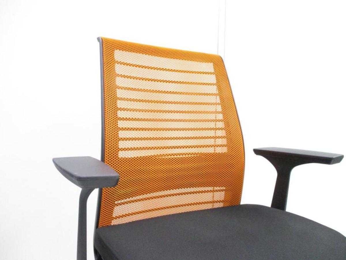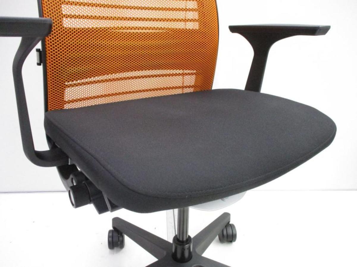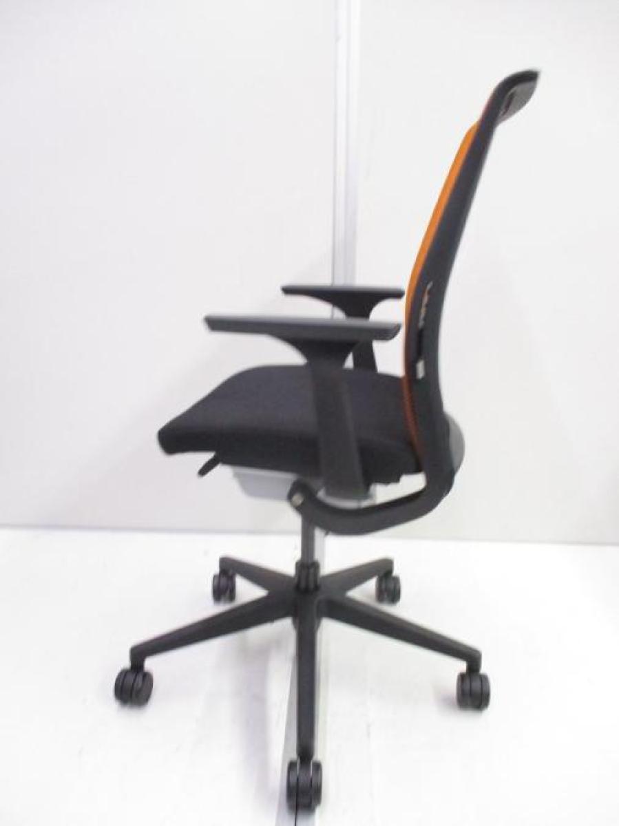 【さらに快適になった新型THINK!】■スチールケース シンクチェア 肘付 3Dニット 背:タンジェリン 座:ブラック- 川崎店