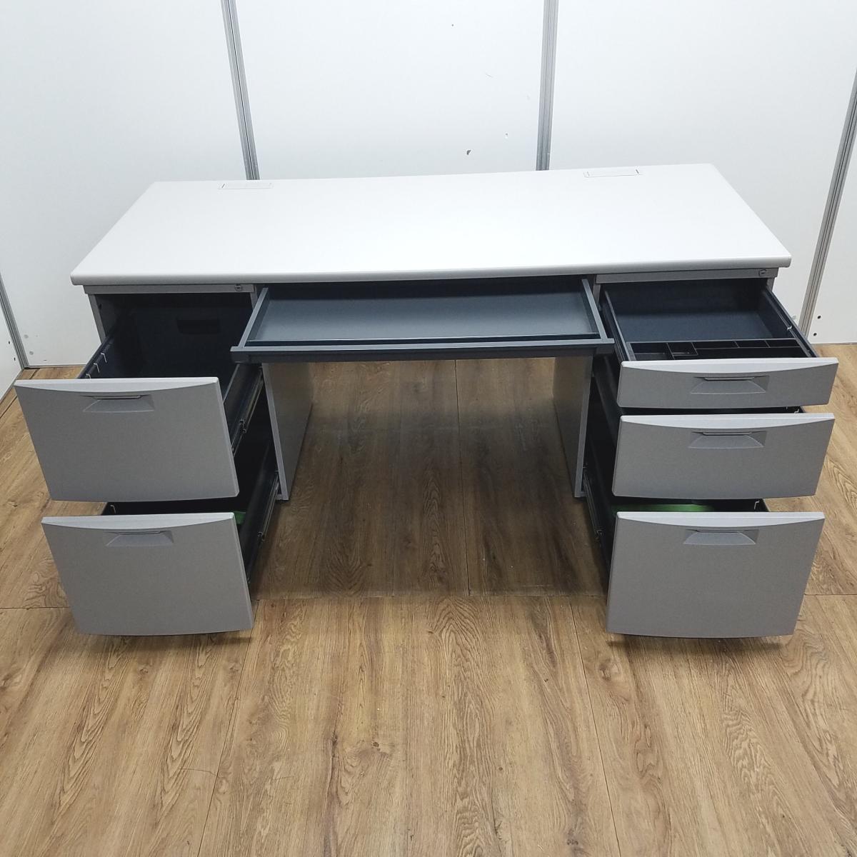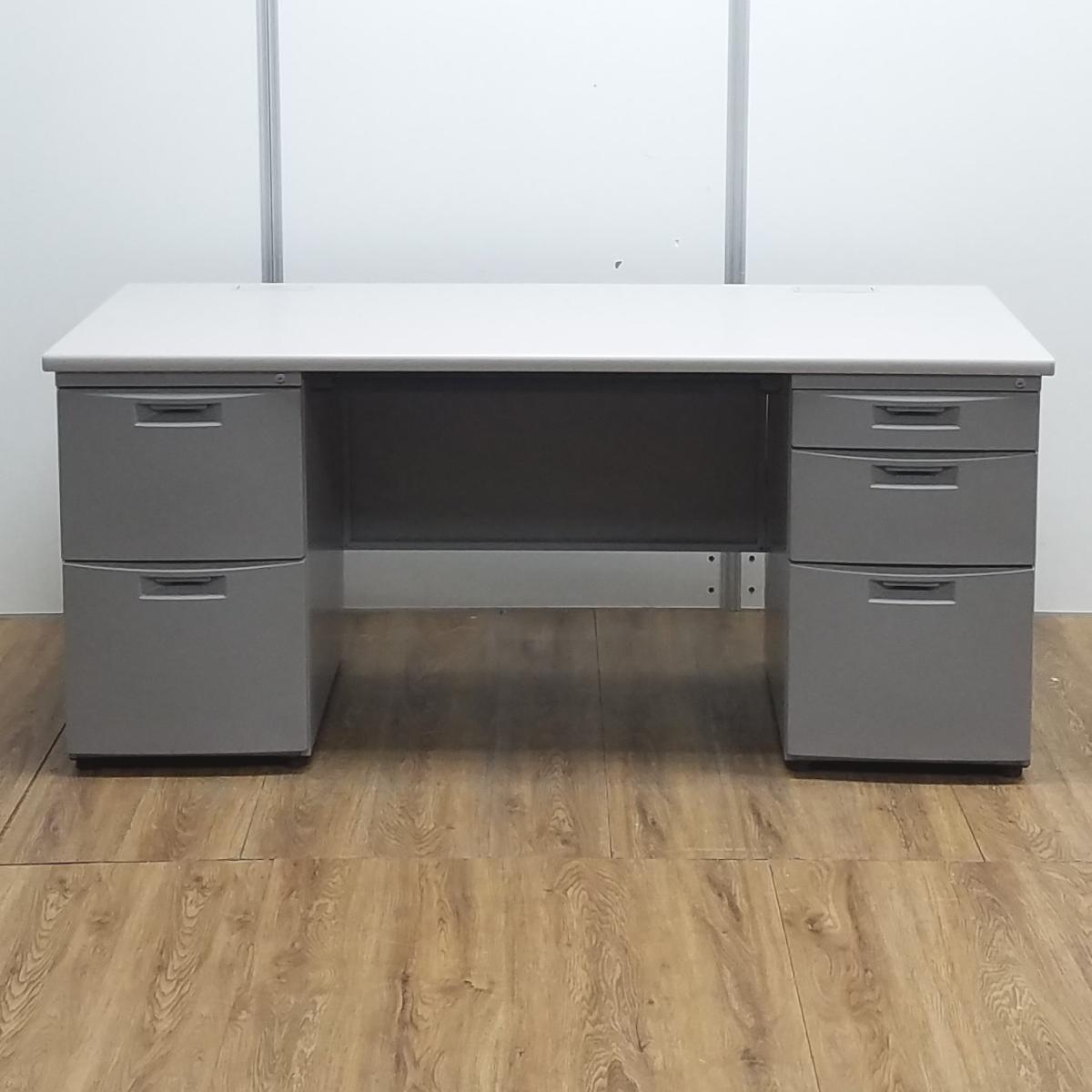 ★イトーキ製 CZ グレー W1600サイズ W1600xD700xH700サイズ 左右で5段の収納引出し 上長席にもオススメ! 天板が広くて使いやすいW1600タイプ! 収納力抜群! 両袖机!!- 京都東寺店