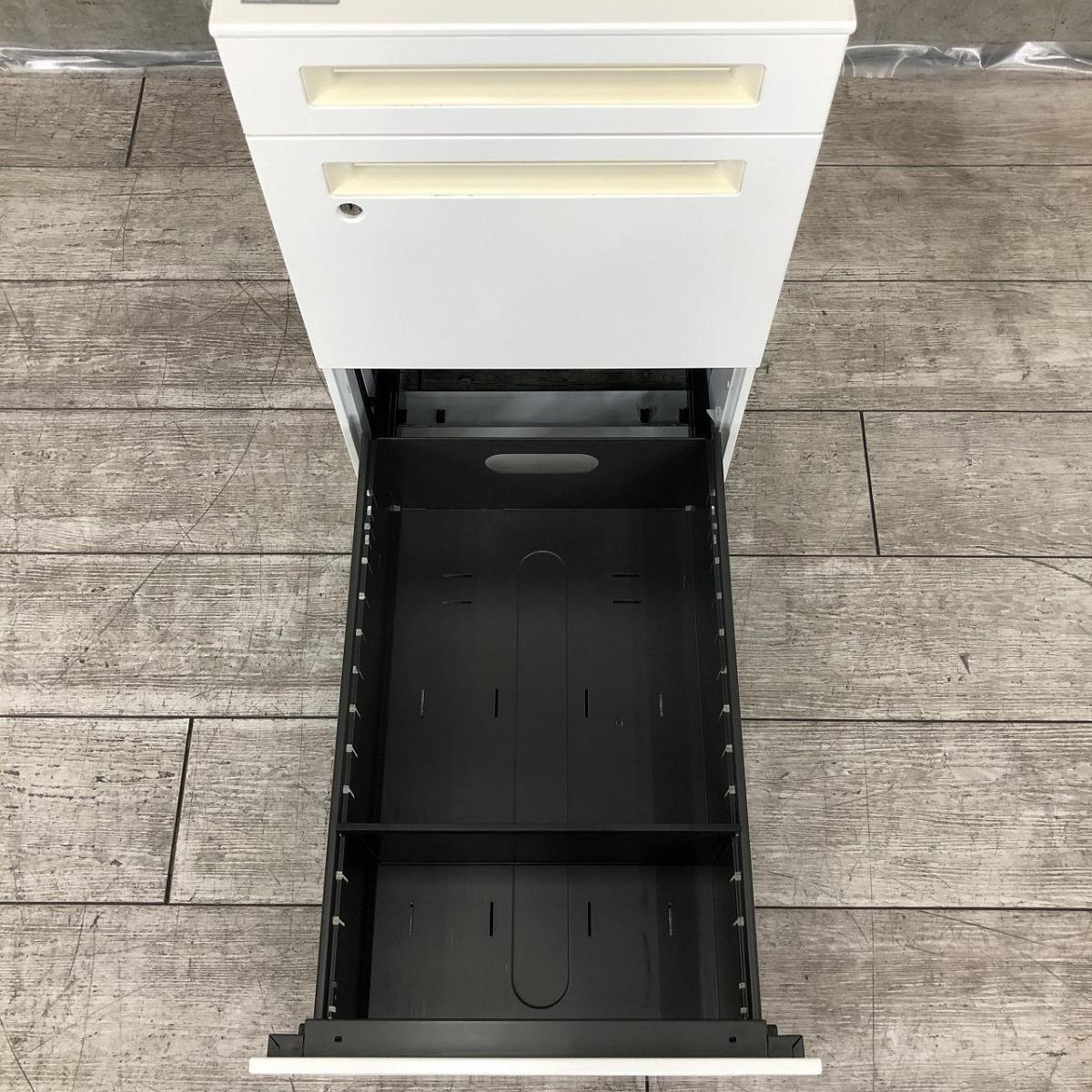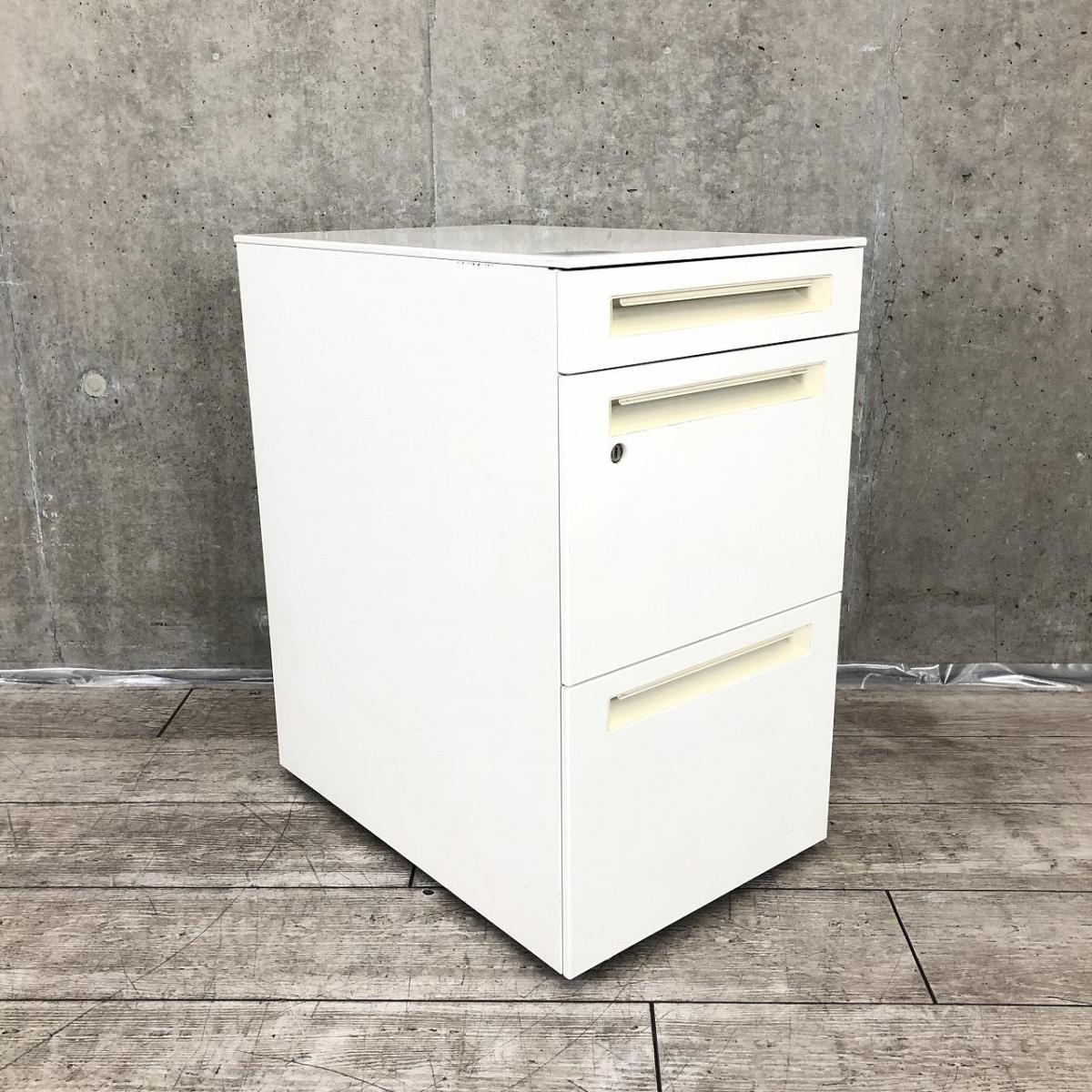 【在庫入替セール】3段ワゴン オカムラ プロユニット・アドバンス共通 シリンダー錠 鍵付き フロント把手 ホワイト フリーアドレスデスク向け ※H680のため併用するデスクによっては下に収納不可- 名古屋千種店