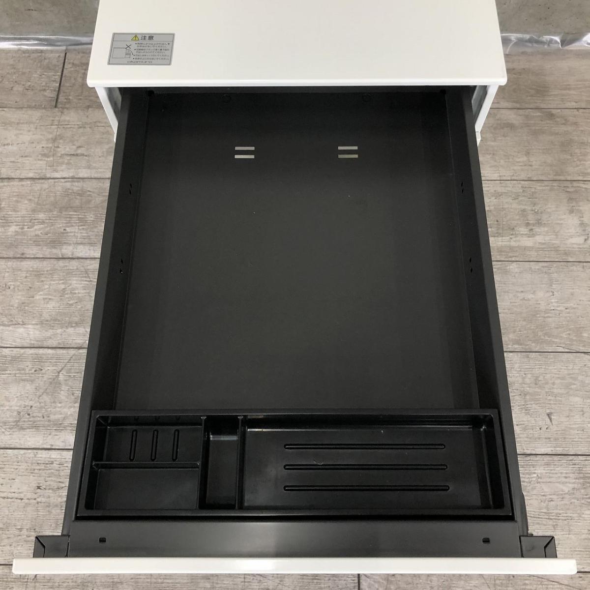 【フリーアドレスの必須品!収納とワークスペースの拡張にオススメ!】■オカムラ(okamura)製 アドバンスシリーズ 3段ワゴン フリアド用 H675㎜ ■色:ホワイト ■シリンダー錠