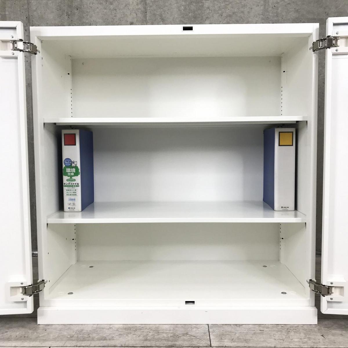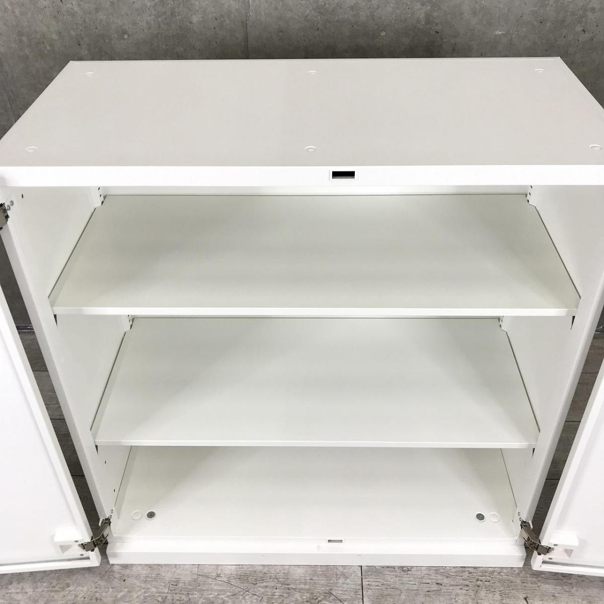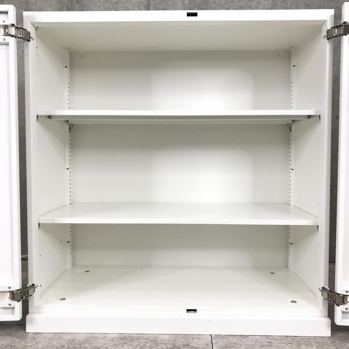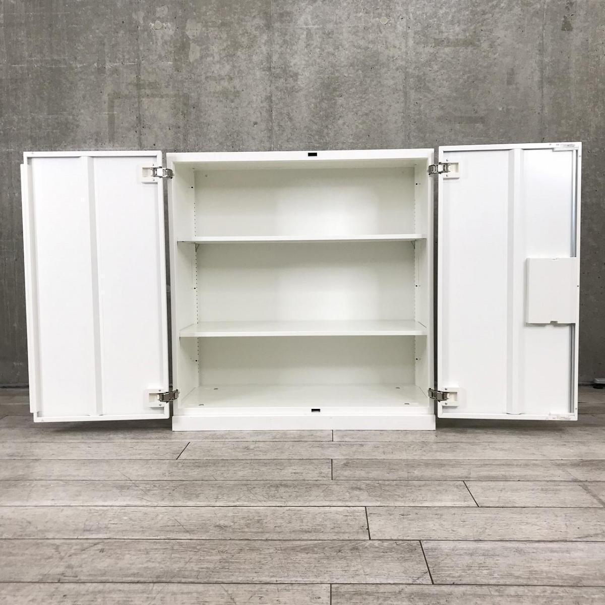 おすすめ/大人気 ■オカムラ(okamura)製 レクトラインシリーズ 両開き書庫 ローキャビネット ■色:ホワイト ■シリンダー鍵