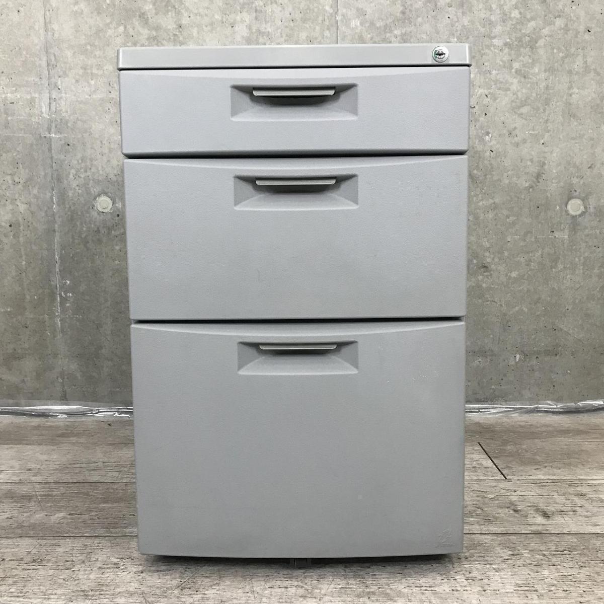 【デスク下の収納・書類管理に!使いやすさ抜群のキャスター付き!】■イトーキ(ITOKI)製 CZシリーズ 3段デスクインワゴン H620㎜ ■キャスター付 ■シリンダー錠 ■グレー【AD】